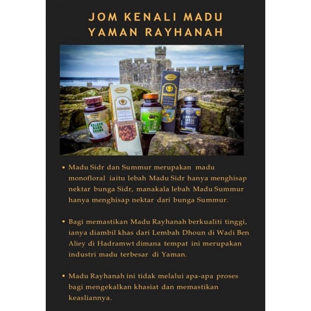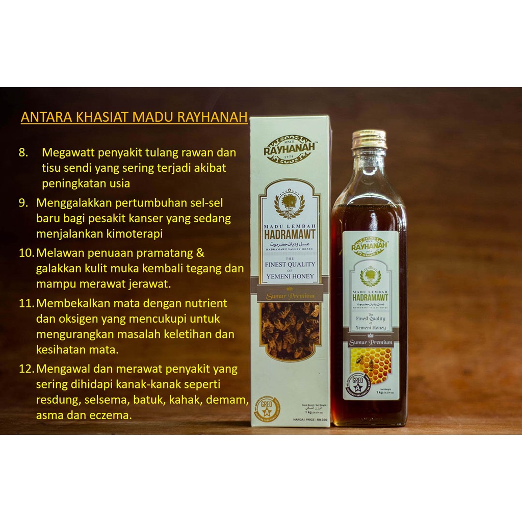 MADU RAYHANAH 1kg 500g 250g 100g - ROYAL SIDR & SUMUR PREMIUM - YAMAN PURE HONEY LEMBAH HADRAMAWT