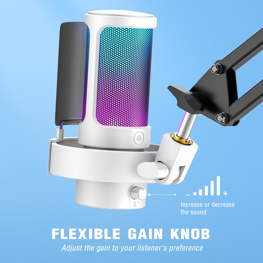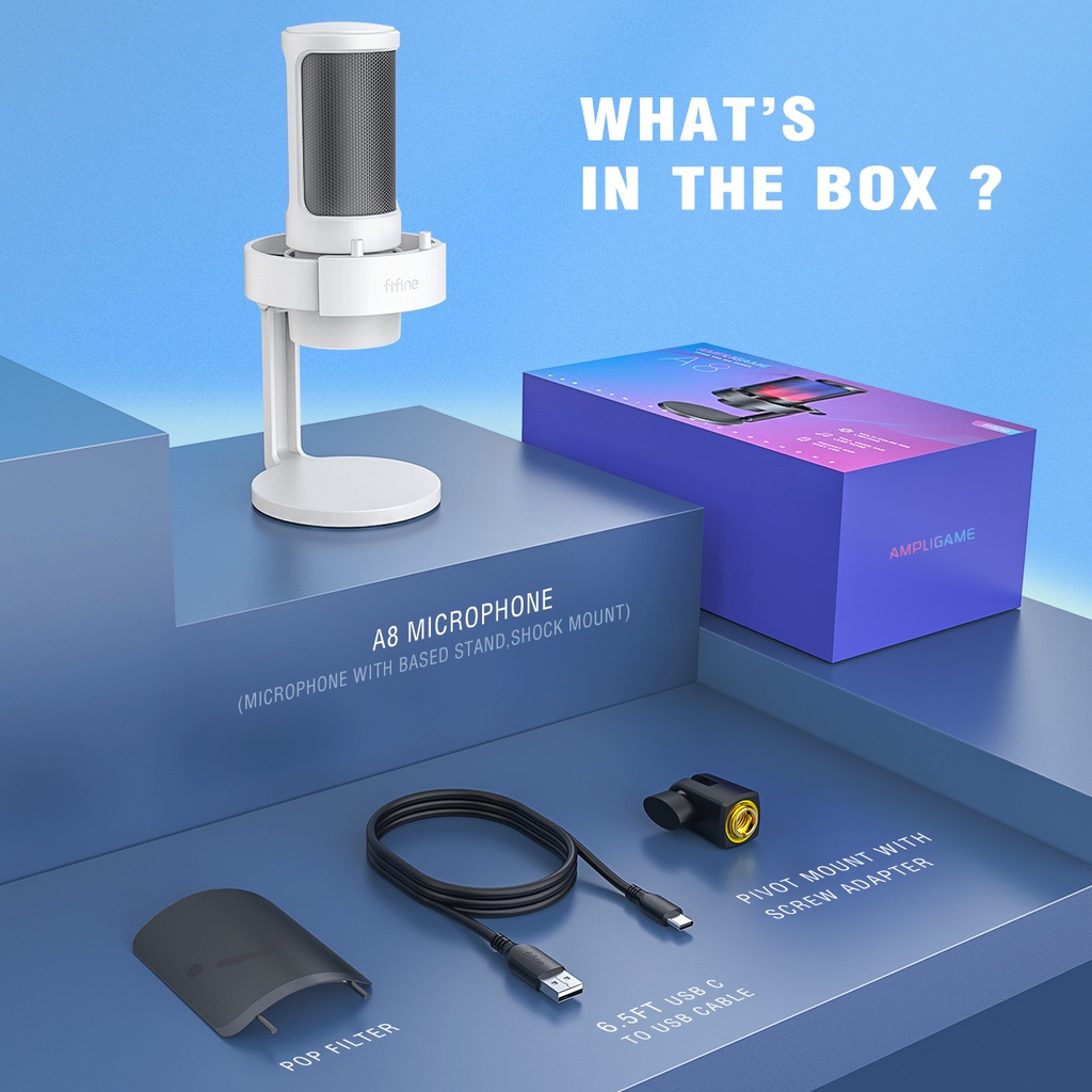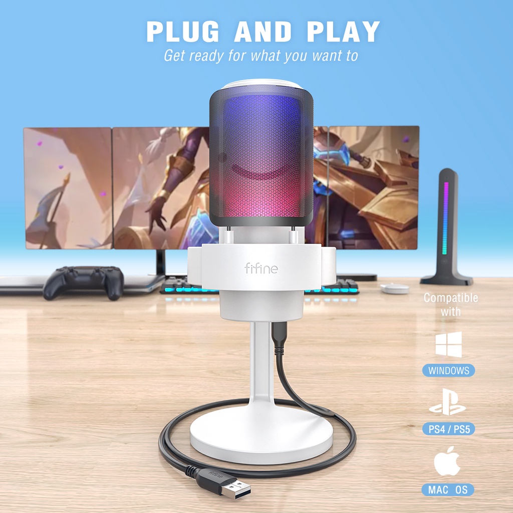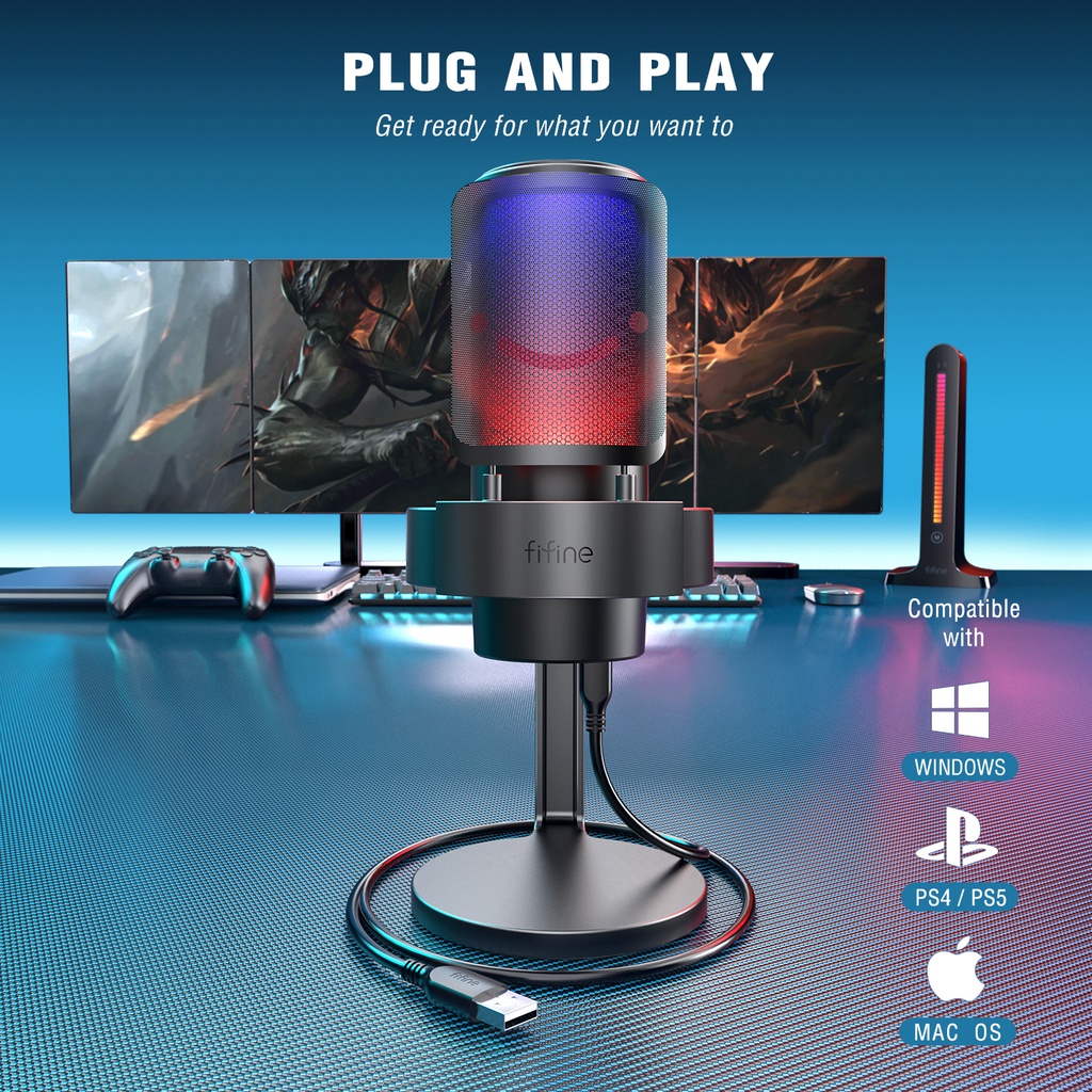 FIFINE A8 USB Condenser Microphone Ampligame for YouTube Video Twitch Gaming for PC and Mac,Headphone monitor ear return and Touch-Mute Button,Mic with 3 RGB Modes -A8