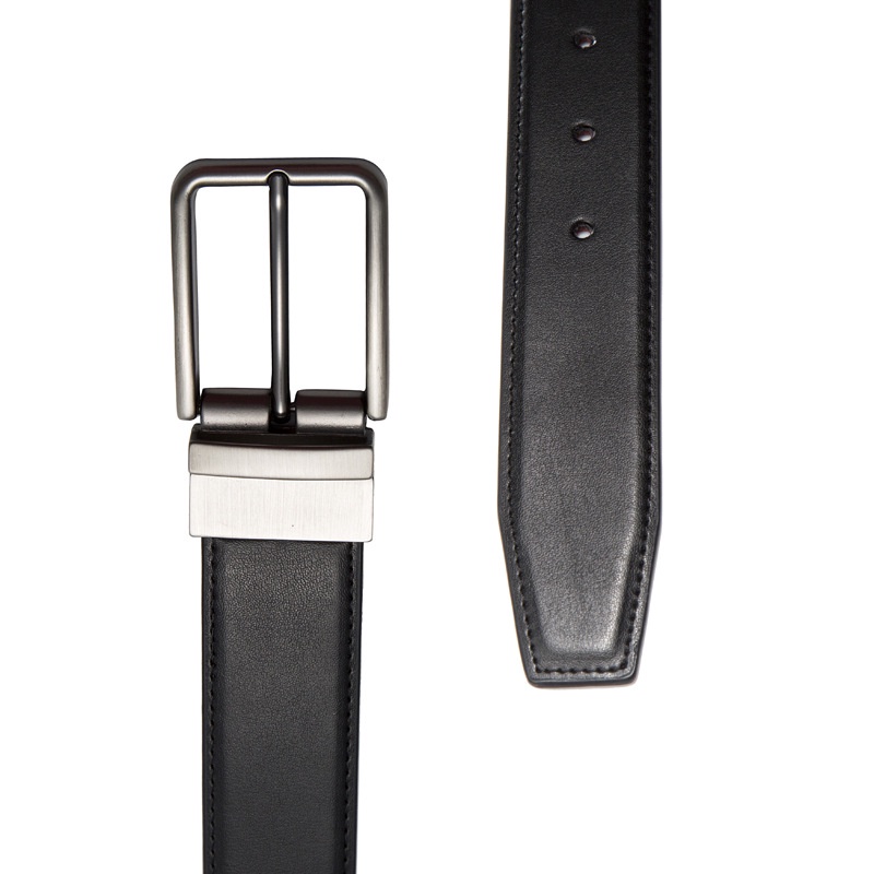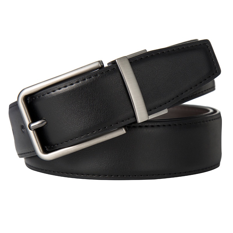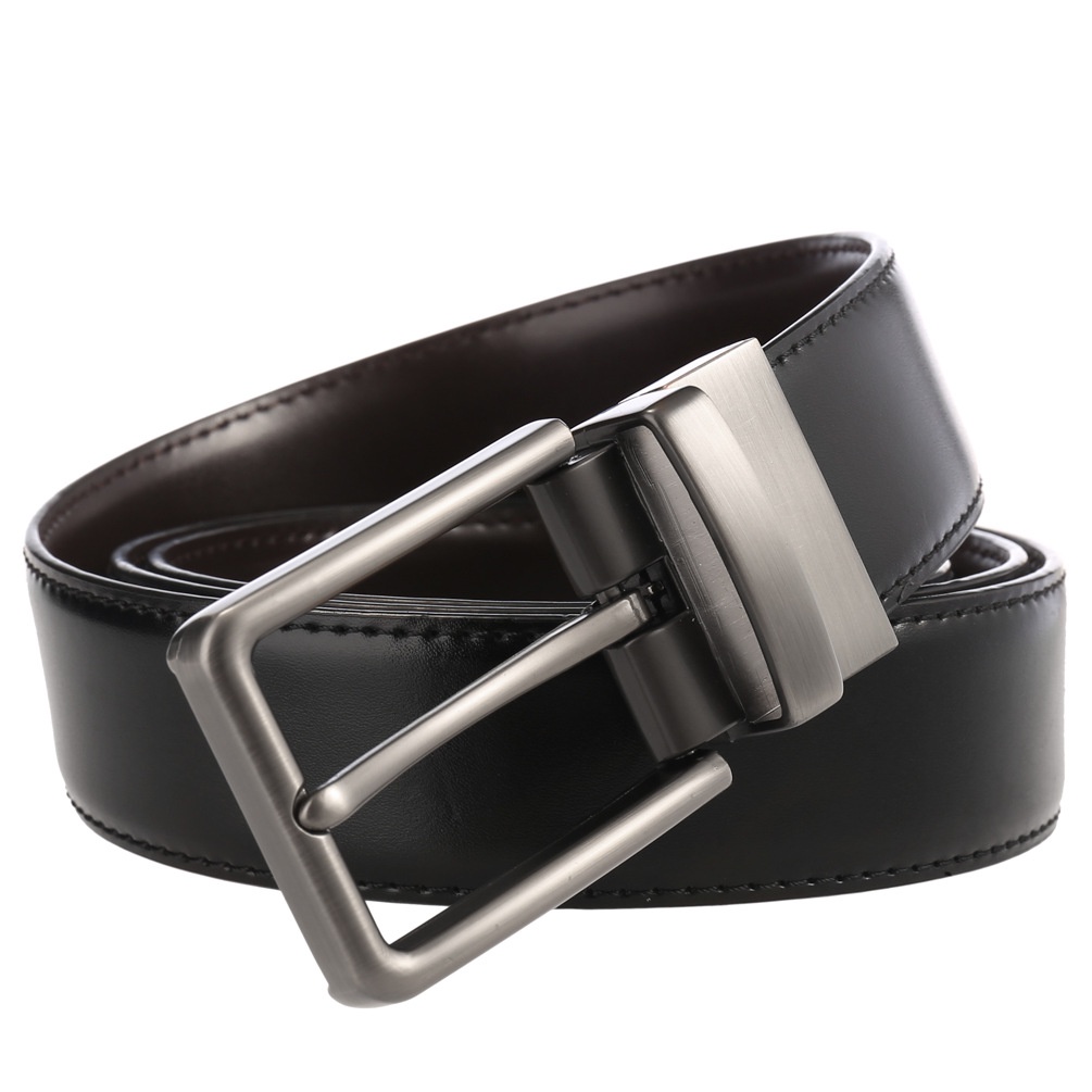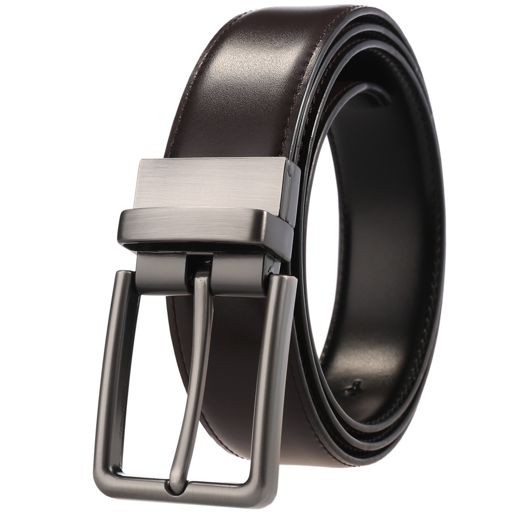 Men Reversible Genuine Leather Casual Belts with Rotated Prong Classic Buckle Leather Belt for Men
