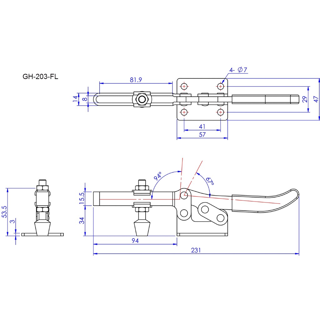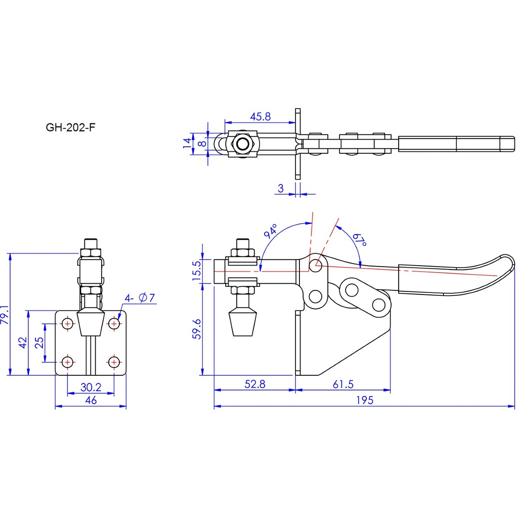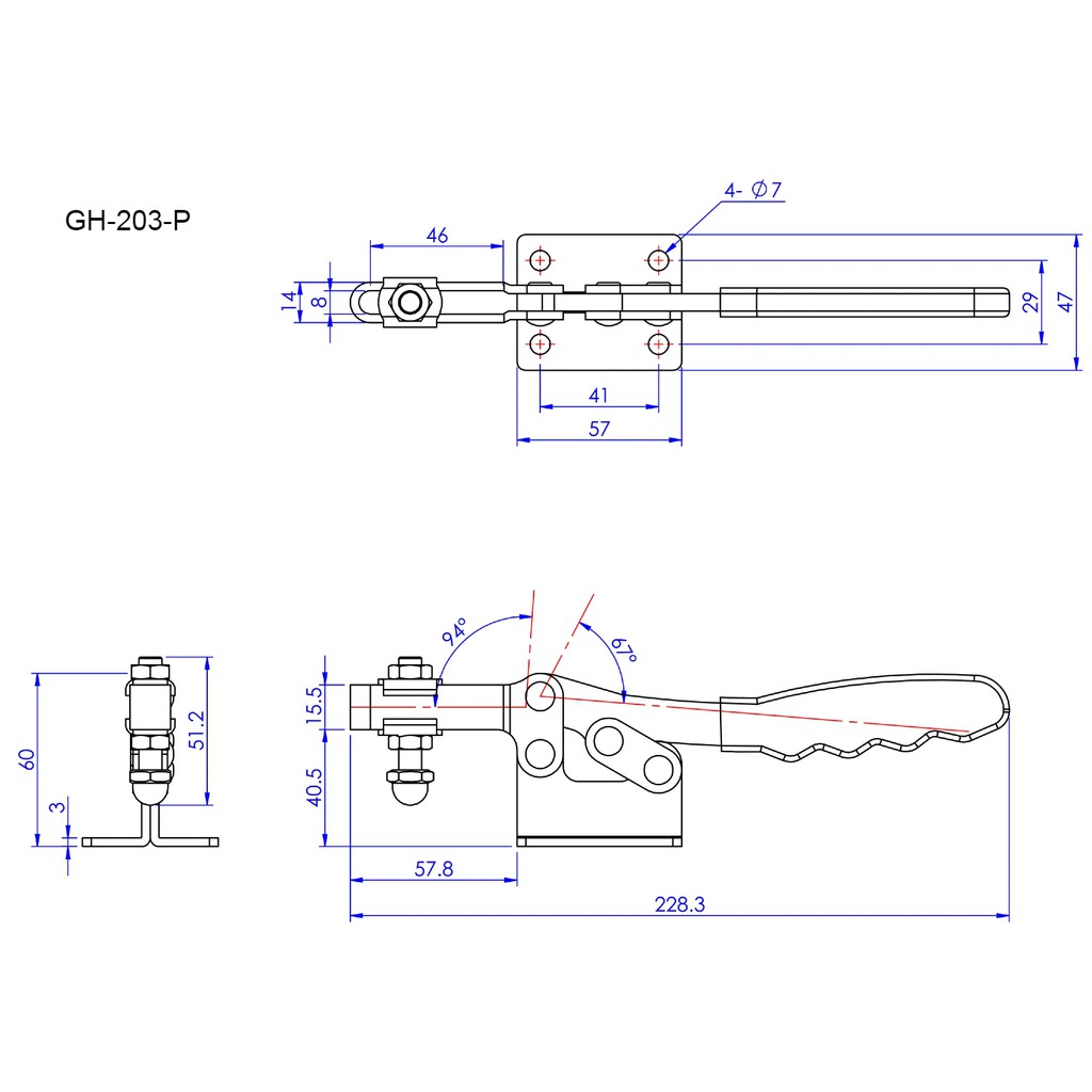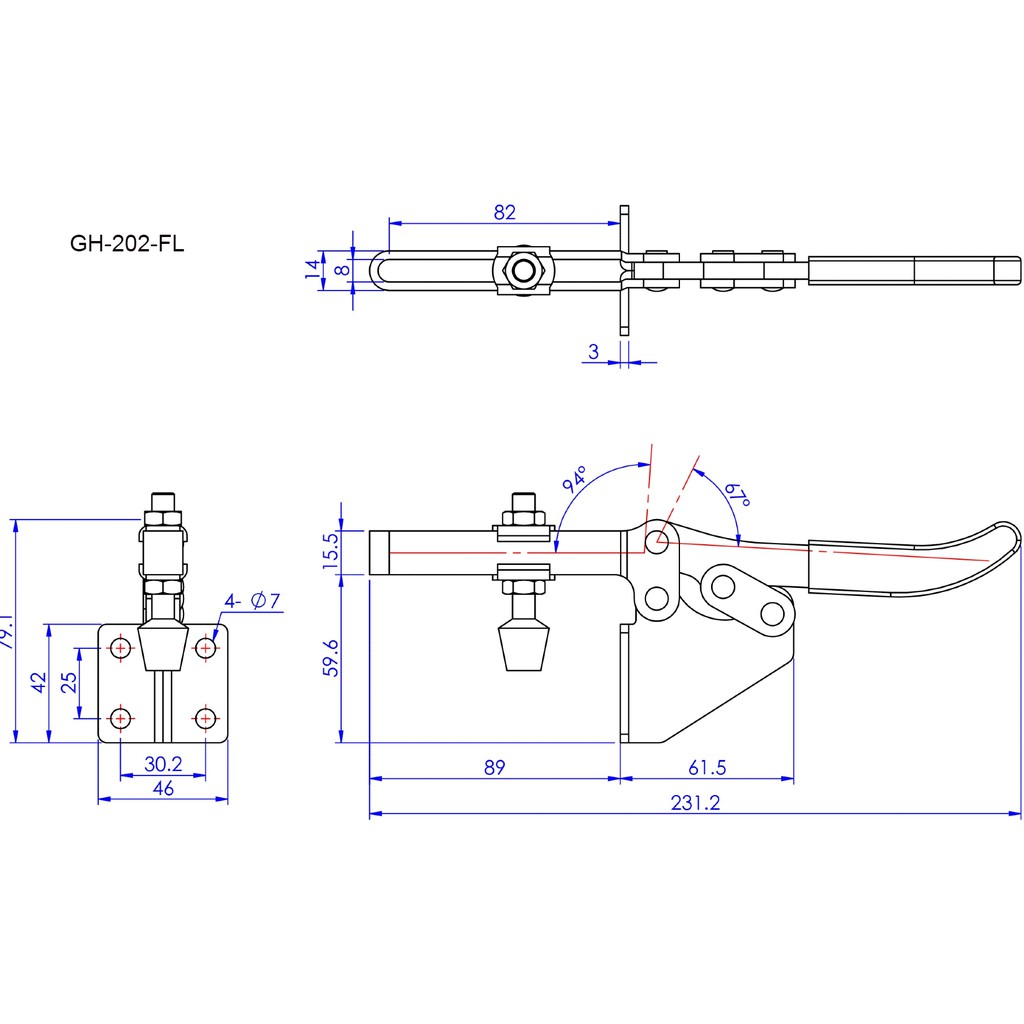 GH-203-F/GH-203-FL/GH-202-F/GH-202-FL/GH-203-P/ GOOD HAND HORIZONTAL HANDLE TOGGLE CLAMPS GH-202-F THRU GH-203-F