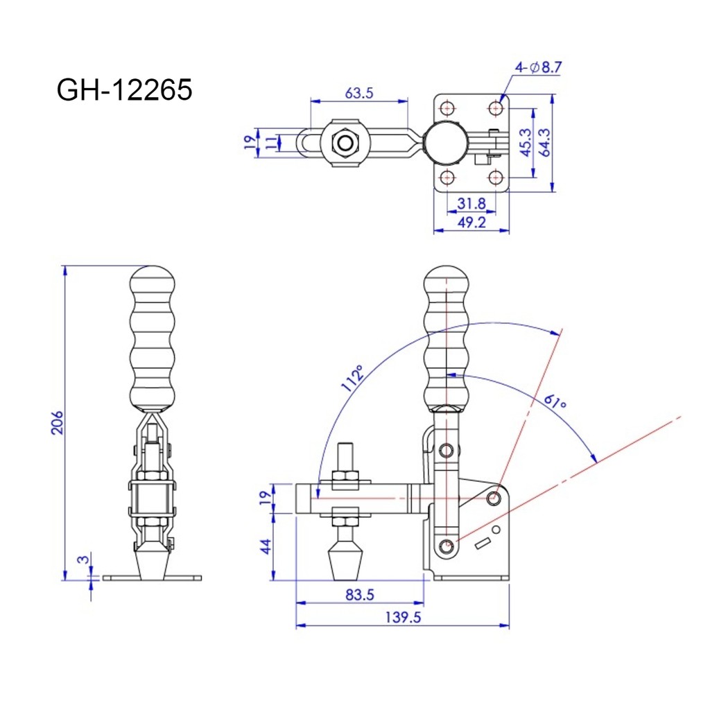 GOOD HAND VERTICAL HANDLE TOGGLE CLAMPS GH-12265 AND GH-12305
