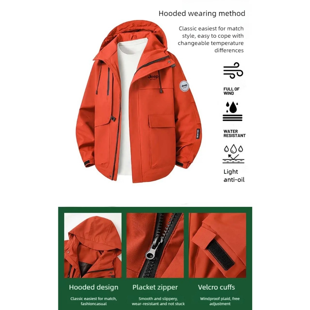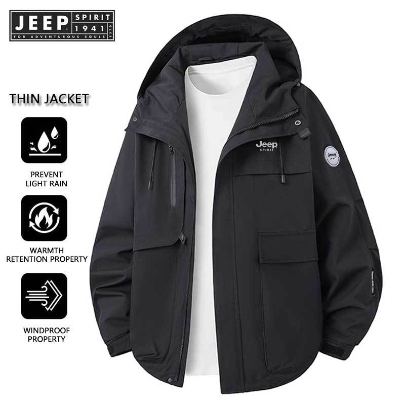 JEEP SPIRIT 1941 ESTD Charge Coat Autumn and Winter New Outdoor Spring and Autumn Non removable hat Waterproof Windproof and Breathable