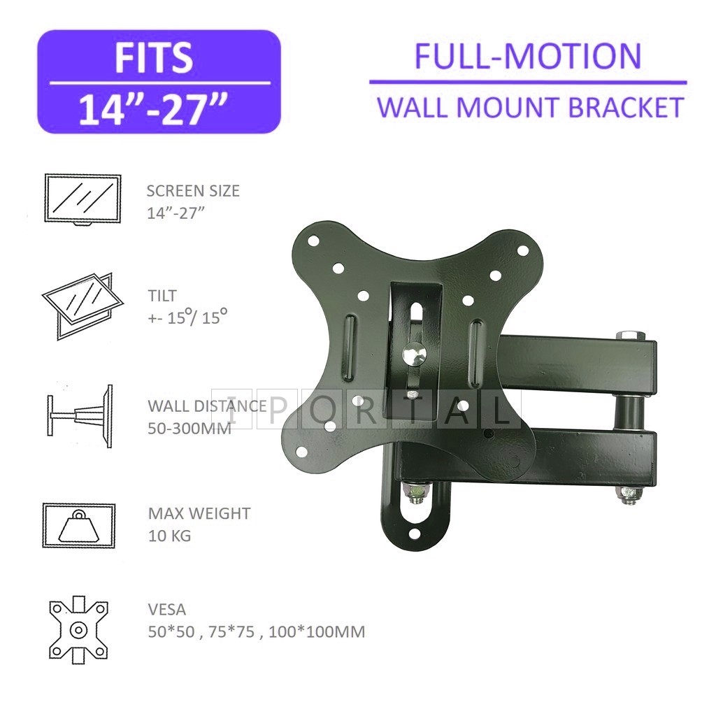 Adjustable 14-27 Inch LCD LED TV Monitor Arm Wall Mount Bracket