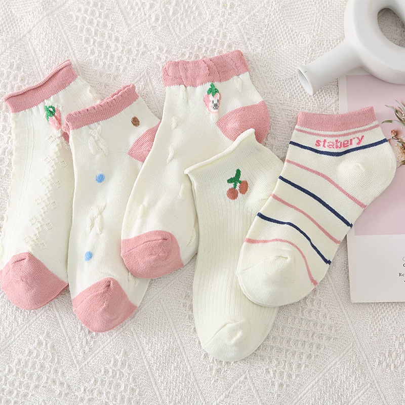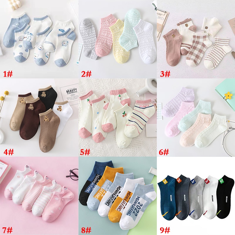 5 Pairs Casual Short Socks Cotton Socks Ankle Women Men Fashion Korean Summer