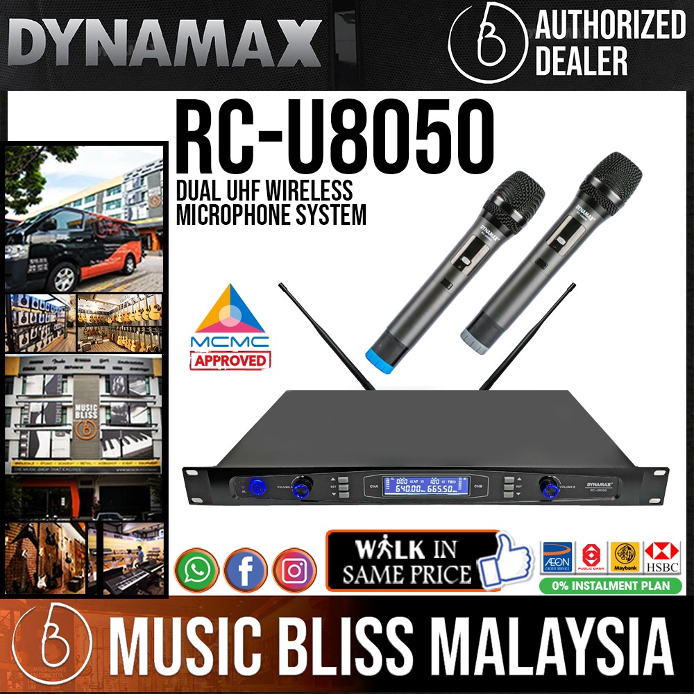 Dynamax RC-U8050 Dual UHF Wireless Microphone System for Performance/Speech (RCU8050)