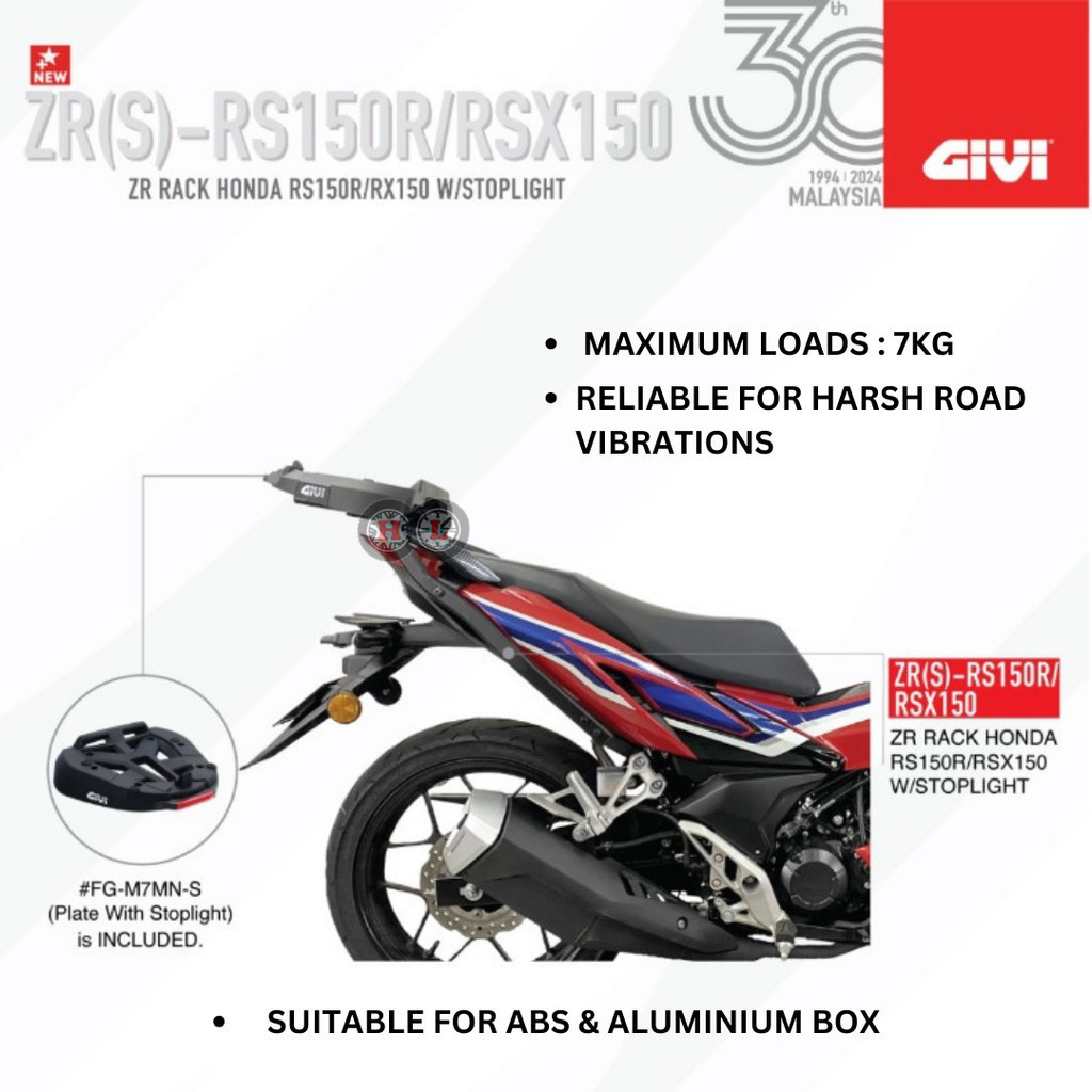 GIVI ZR RACK FOR MT15/Y15/ Y16/ LC135/RS150/RSX WITH STOPLIGHT ORIGINAL - HEAVY DUTY RACK FOR ALUMINIUM BOX & ABS BOX