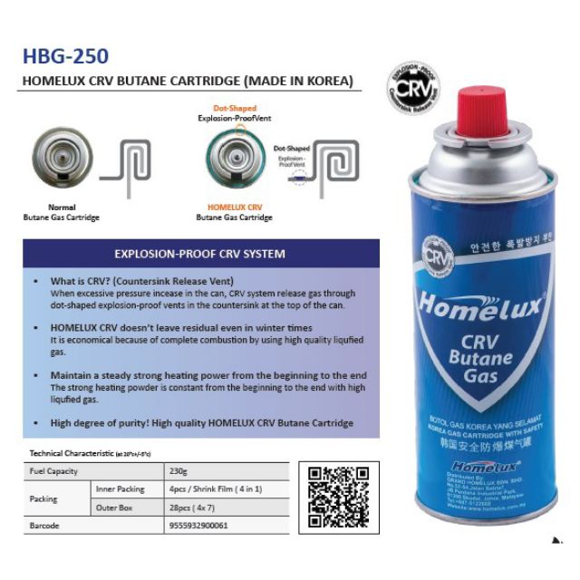 [HOMELUX / MASCROWN] 4 Bottle Butane Gas Cartridge / Gas Tin