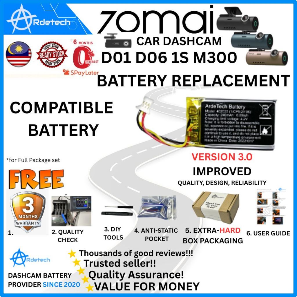70mai Battery 1S D01 D06 M300 (COMPATIBLE) Replacement Repair 70 mai DIY Set Pro