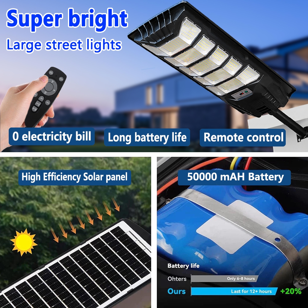 【Super Bright】30000W Solar Street Light Street Lamp H3 Modes uman Induction Motion Sensor Outdoor Yard Wall Lights IPX6