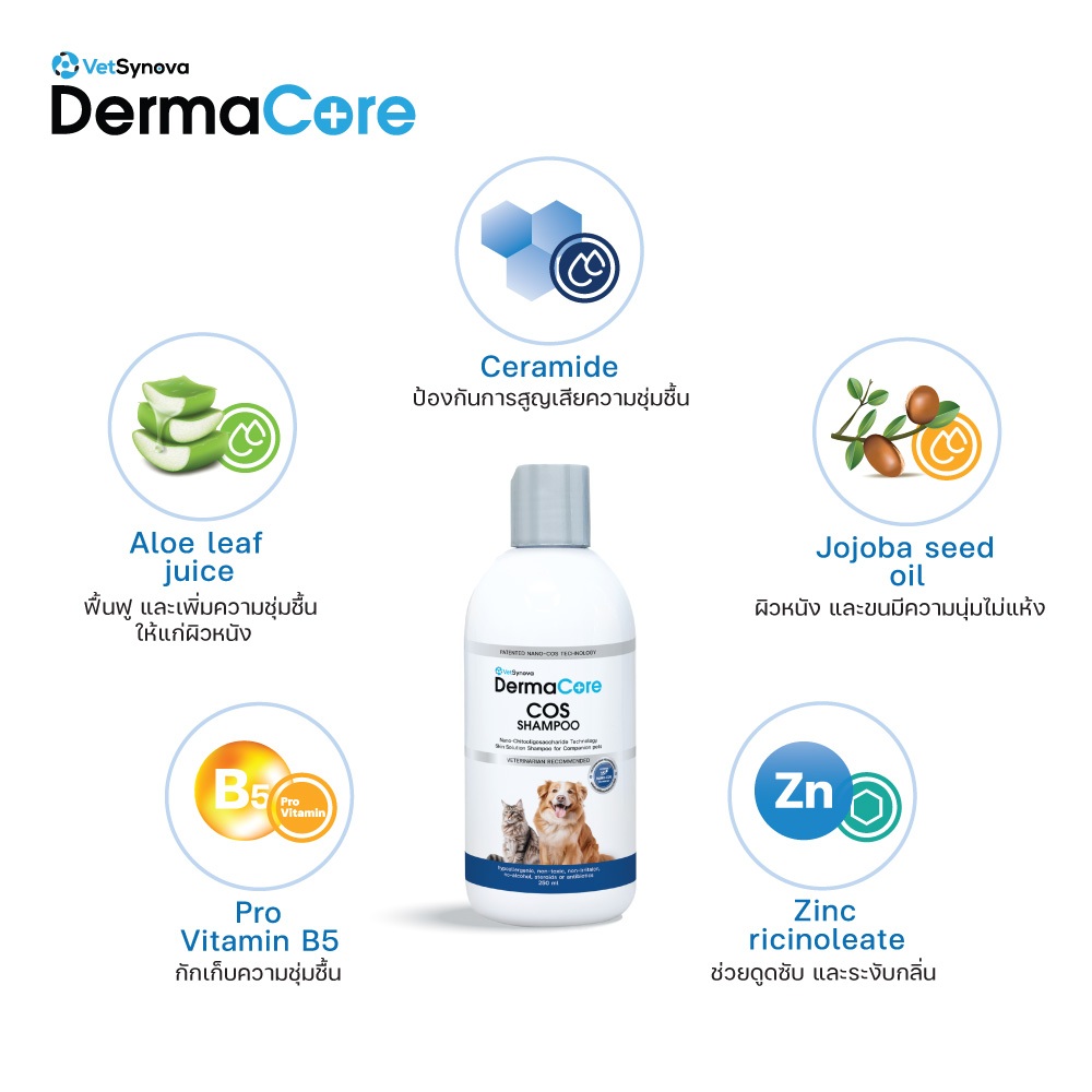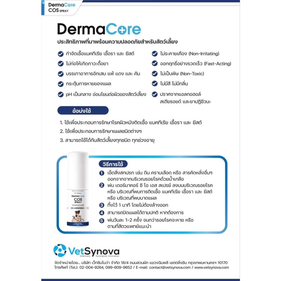 DermaCore COS Spray 20 ml 100 Shampoo 250 Yeast Aerosol Cat Dog Dermatitis Kill Germs Wound