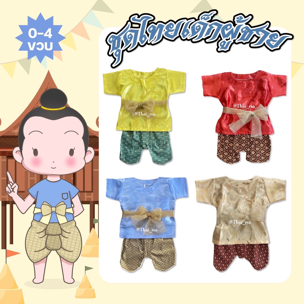 Thai Children's Clothing Songkran Outfit For Boys Pattern Set Pants Children 3-3 Years Old (T04)