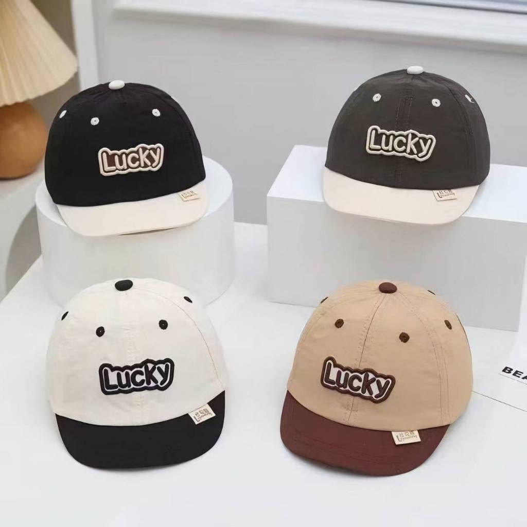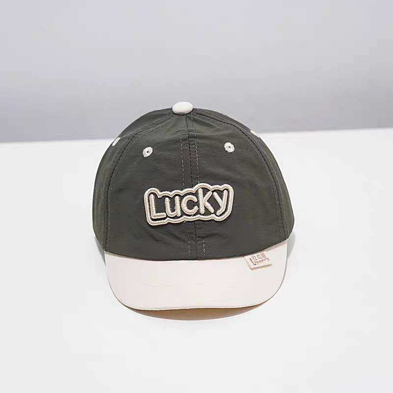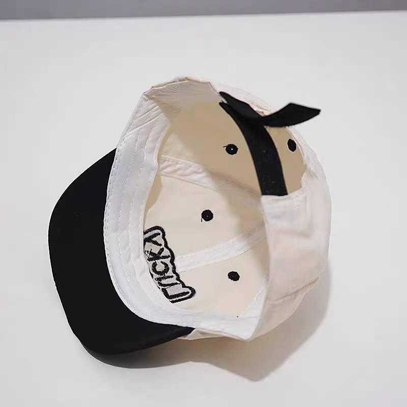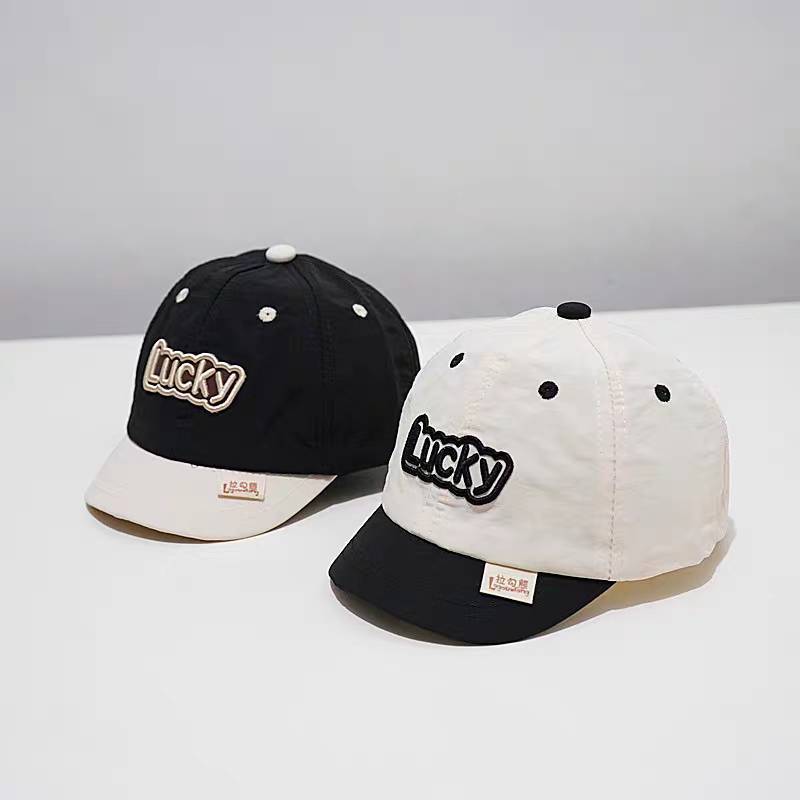 Children's Hat 1-6 Years Old Head Circumference 50-52 Cm. Japanese Style Short Brim Cap Two-Tone Fabric Embroidered With Lucky Letters Can Be Worn In Size There Are 4 Colors.