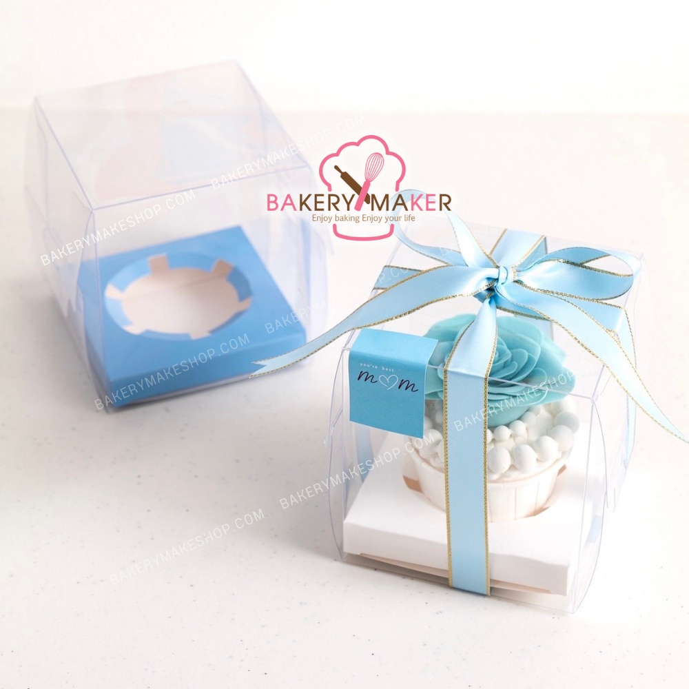 clear Cupcake Box 1 Hole 5 Pieces Blue/White Base boxes Valentine's day Candy