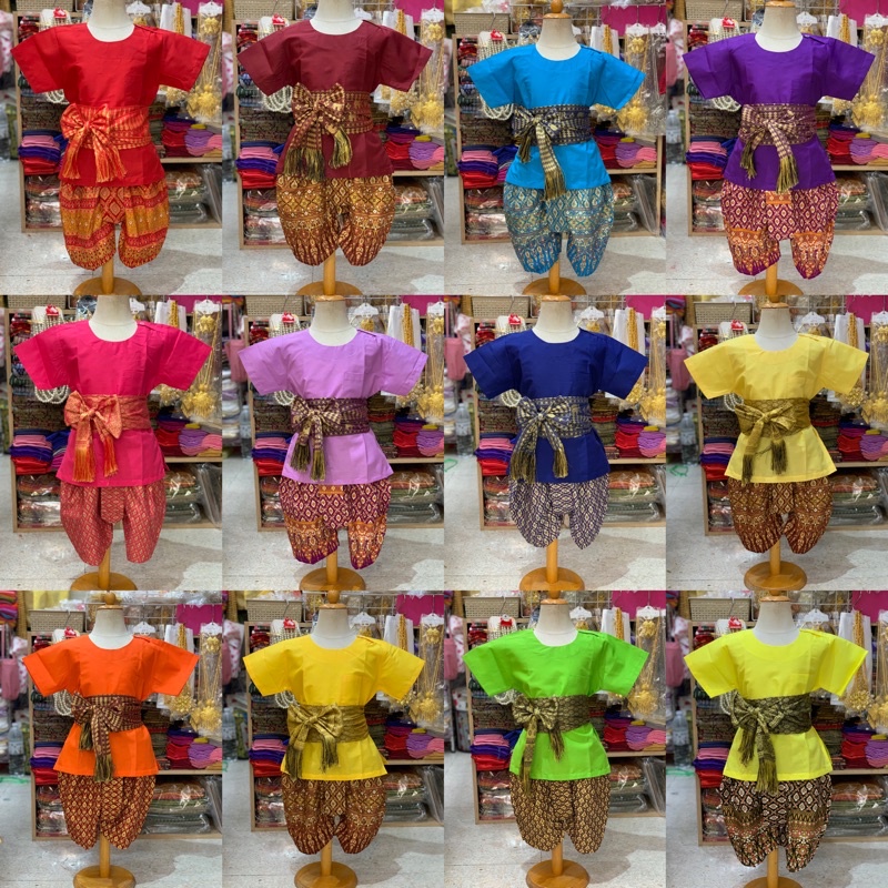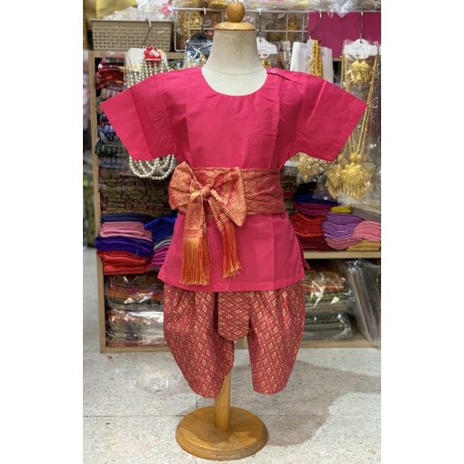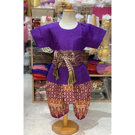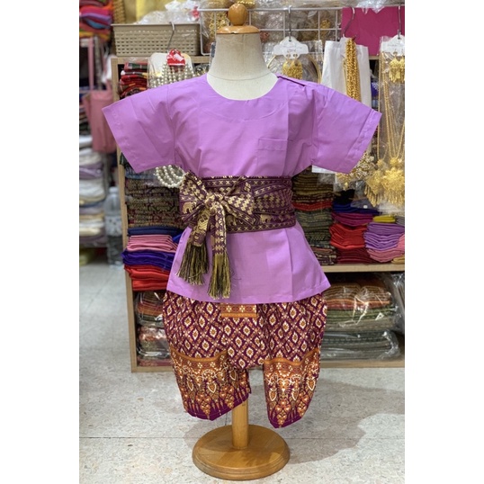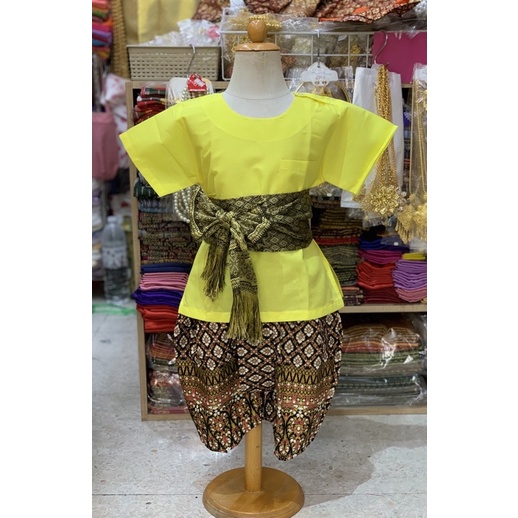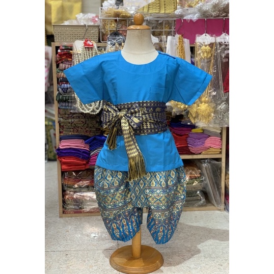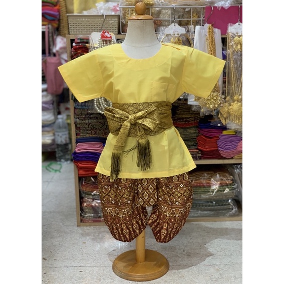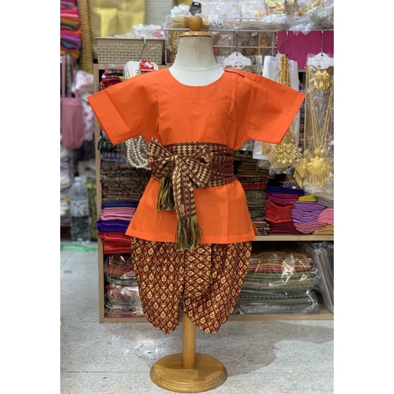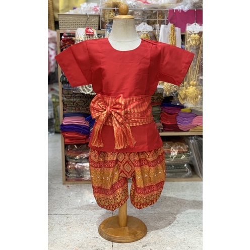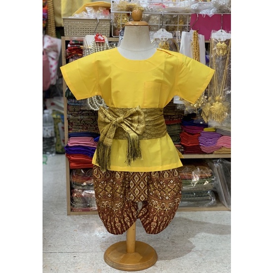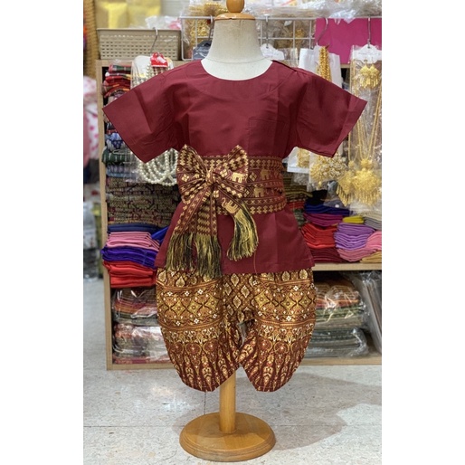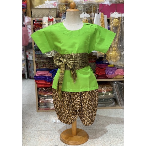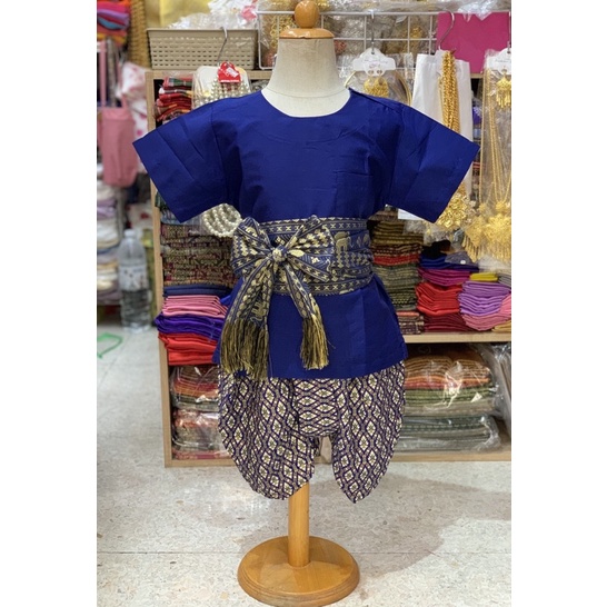 Thai Boy's Outfit (Round Neck Shirt/Gold Print Fabric/Strap Fabric)