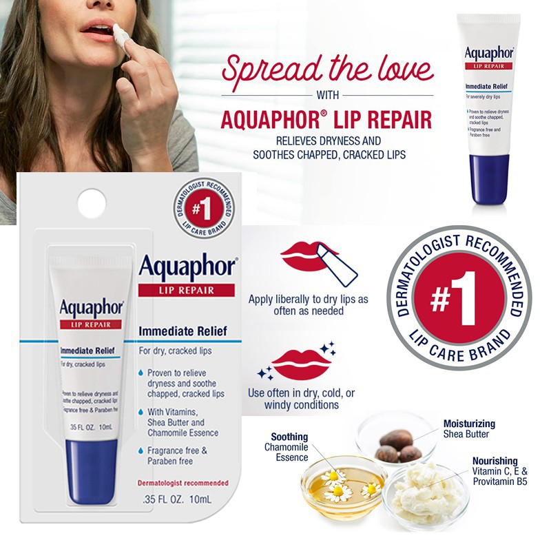 USA Restores Healthy Lips Smooth Aquaphor Lip Repair Ointment Long Lasting Moisture to Soothe dry Balm Aquaphor Lip balm