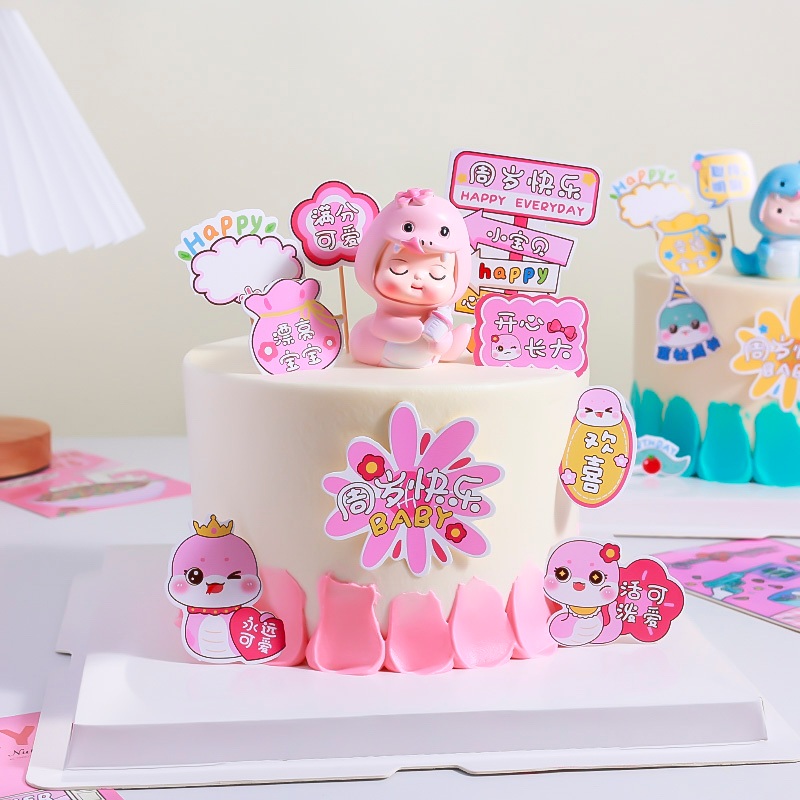 [Ready Stock] Snake Baby Boy Baby Girl Cupcake Cake Topper Cake Decoration 蛇宝宝 蛇年 龙 满月 杯子蛋糕 蛋糕装饰