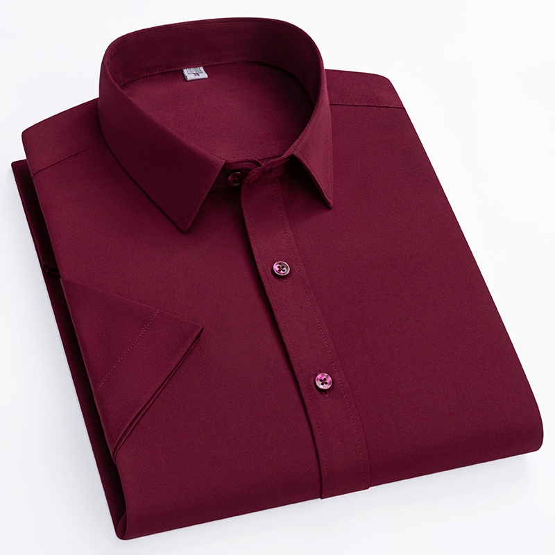 Smart Casual Non Iron Short Sleeve Plain Korean Style Slim Fit Office Work Men Formal Dress Shirt