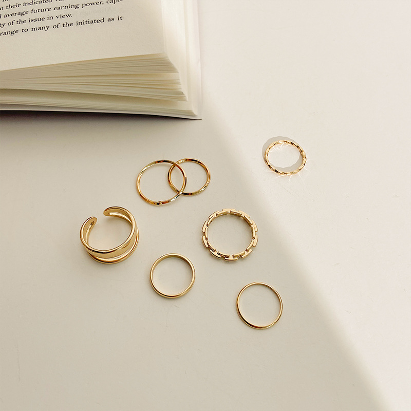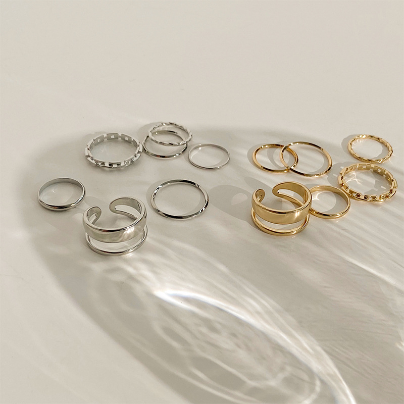 7pcs/set Fashion Retro Finger Rings Alloy Hollow Out Band Ring Gold Silver Color Minimalist Jewelry for Women Gifts