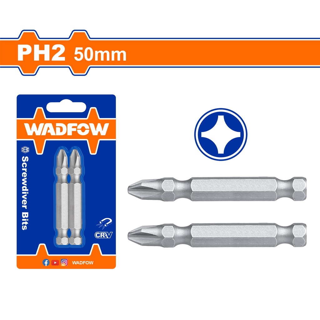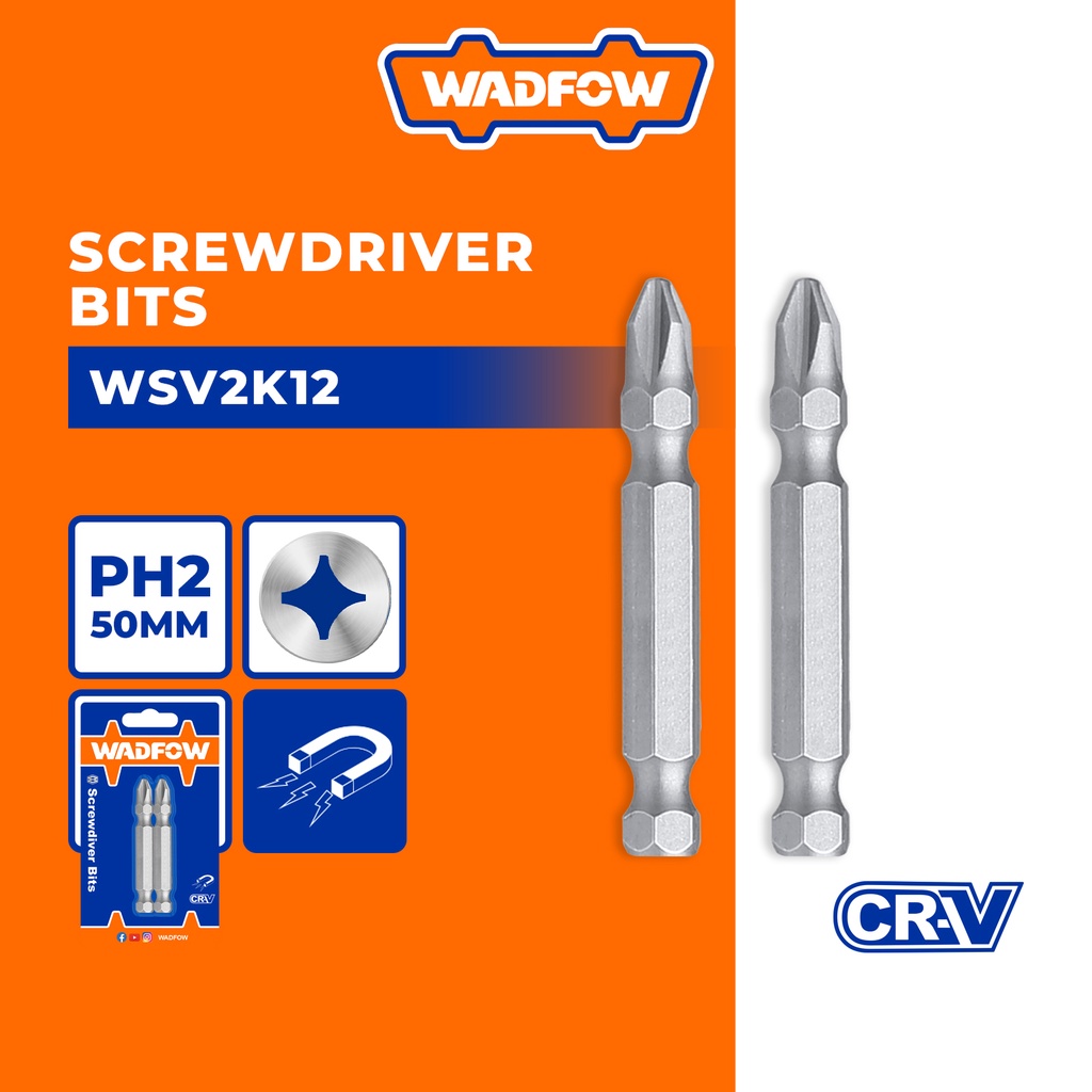 WADFOW Screwdriver Bits Head PH2 Hardened & Tempered CR-V Steel Hardened & Tempered CR-V Steel (50mm/2 Pcs/Set) WSV2K12
