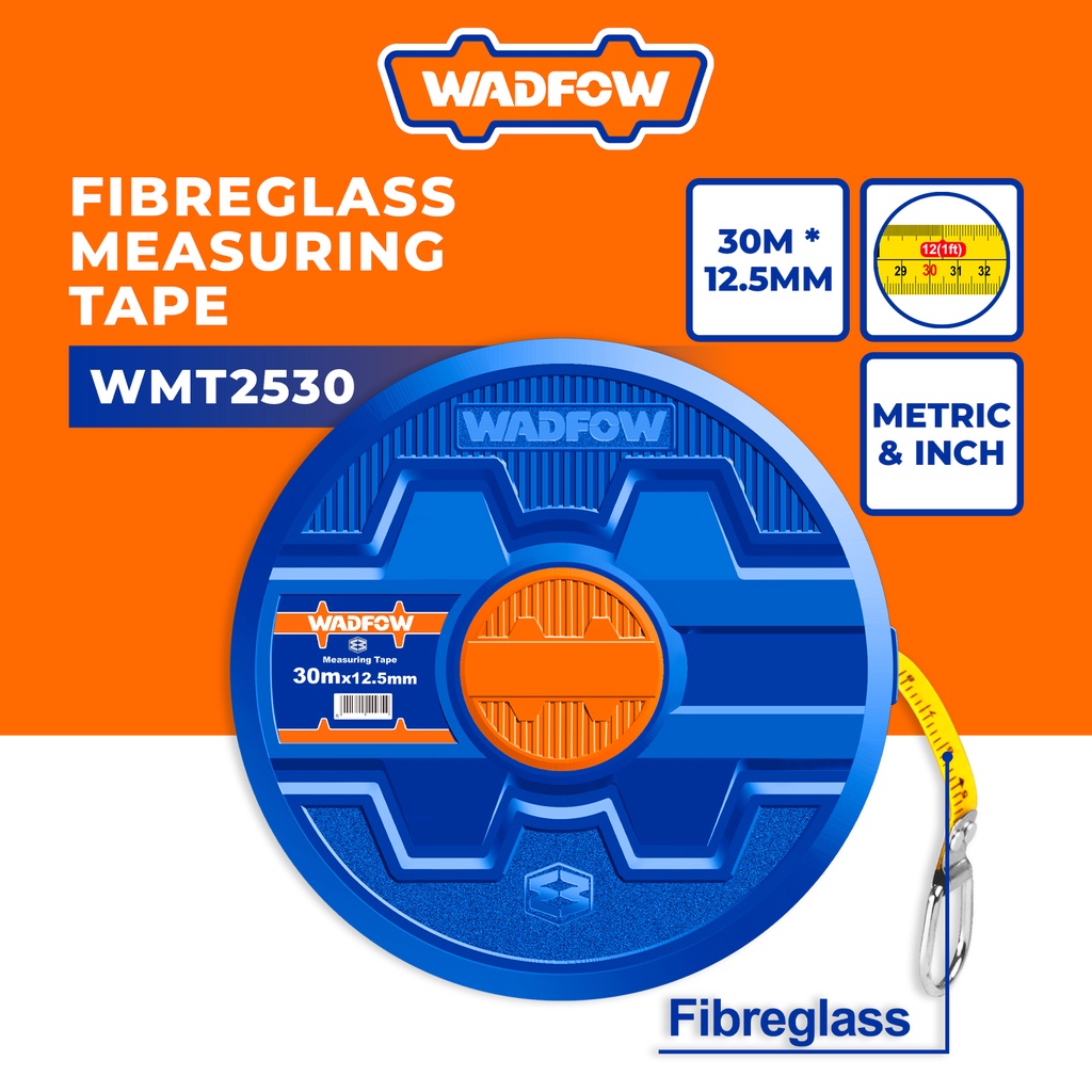 WADFOW Fibreglass Measuring Tape With Metric and Inch Unit Reading (30M x 12.5mm) WMT2530