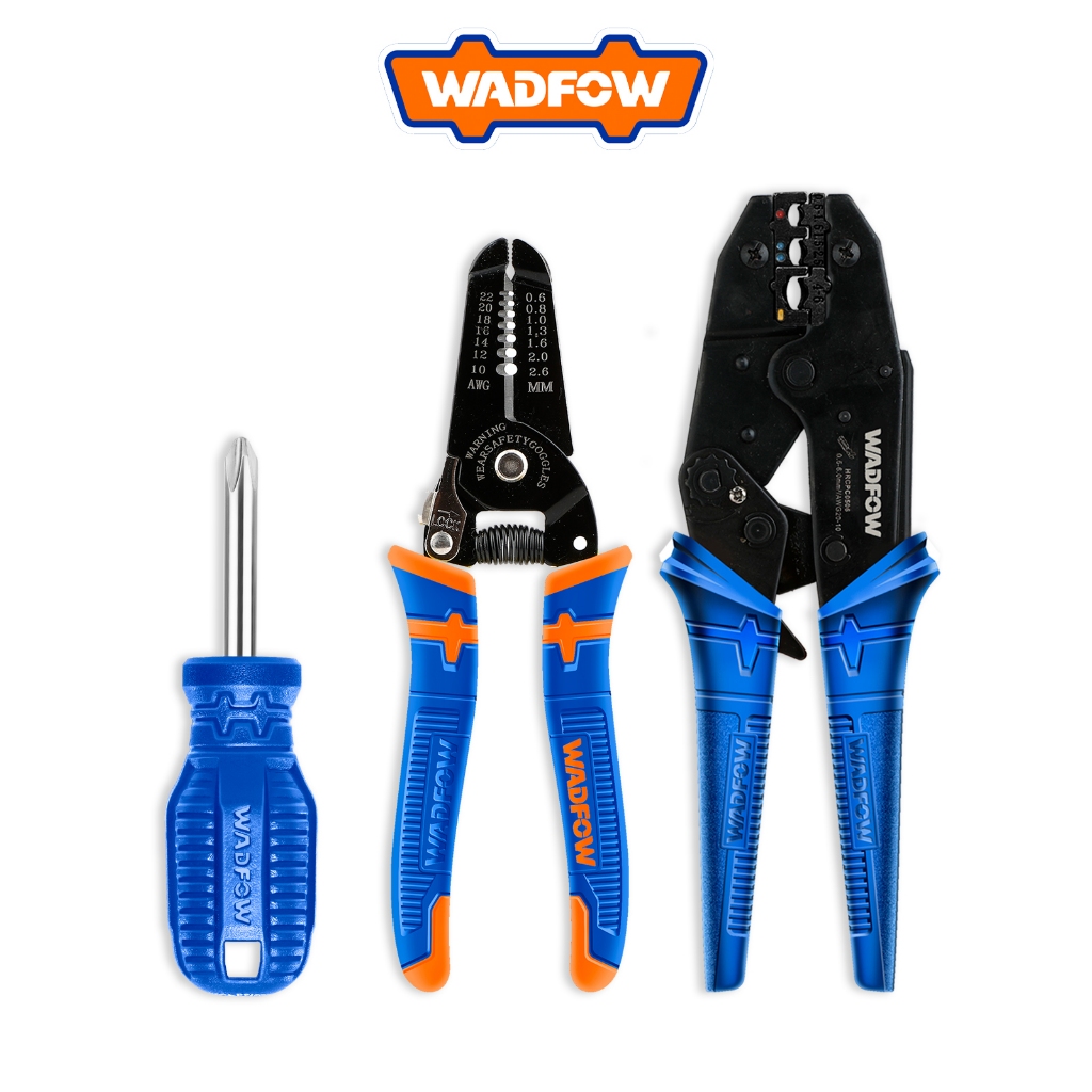 WADFOW Crimping Pliers Set (7 Pcs) incl. Ratchet Pliers + Wire Stripper + Screwdriver + Dies + Box WHS1B07