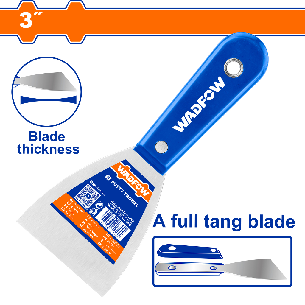 WADFOW Putty Trowel (3"), Single Piece Blade Design w/ Plastic Handle, 1.0mm Thickness WPT6303