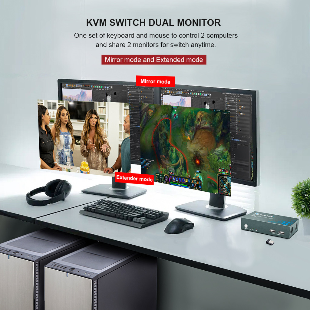 2 Port KVM Switches with 4K@30Hz USB 1.1 2 Computers 2 Monitor KVM Switch Support Hot Key Plug and Play