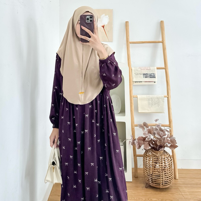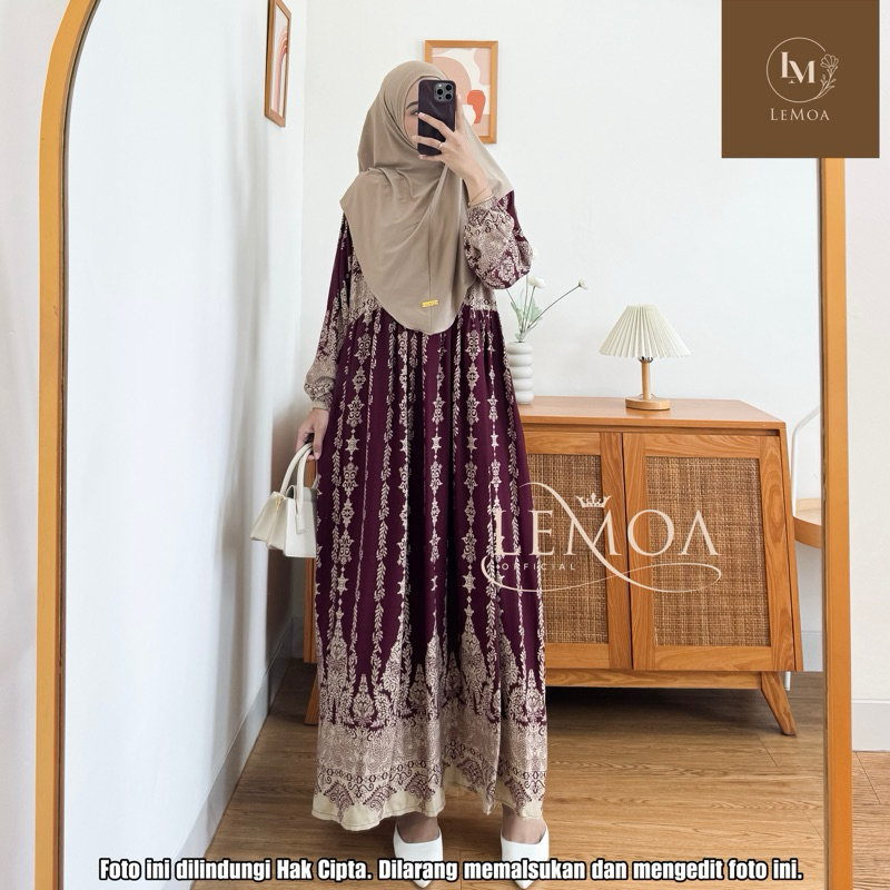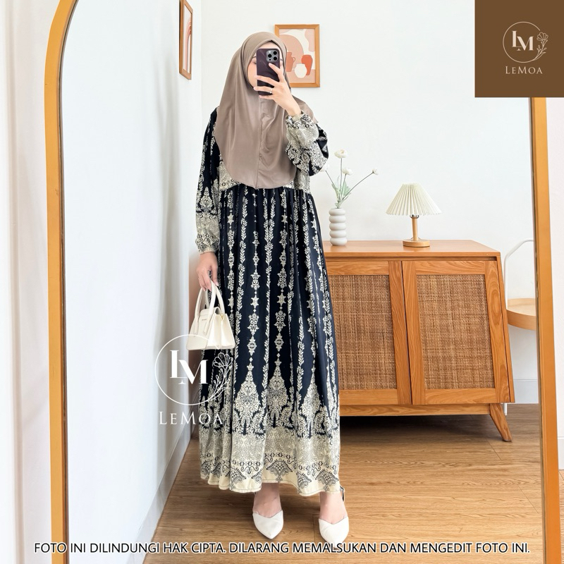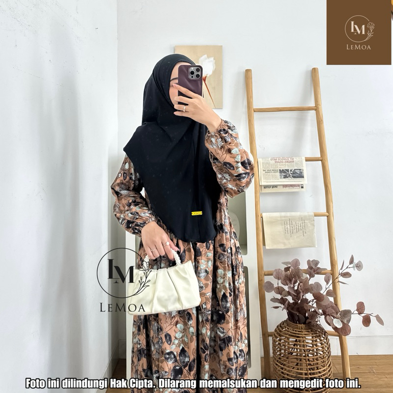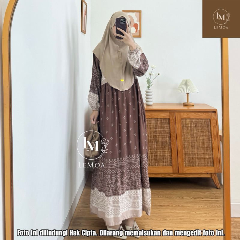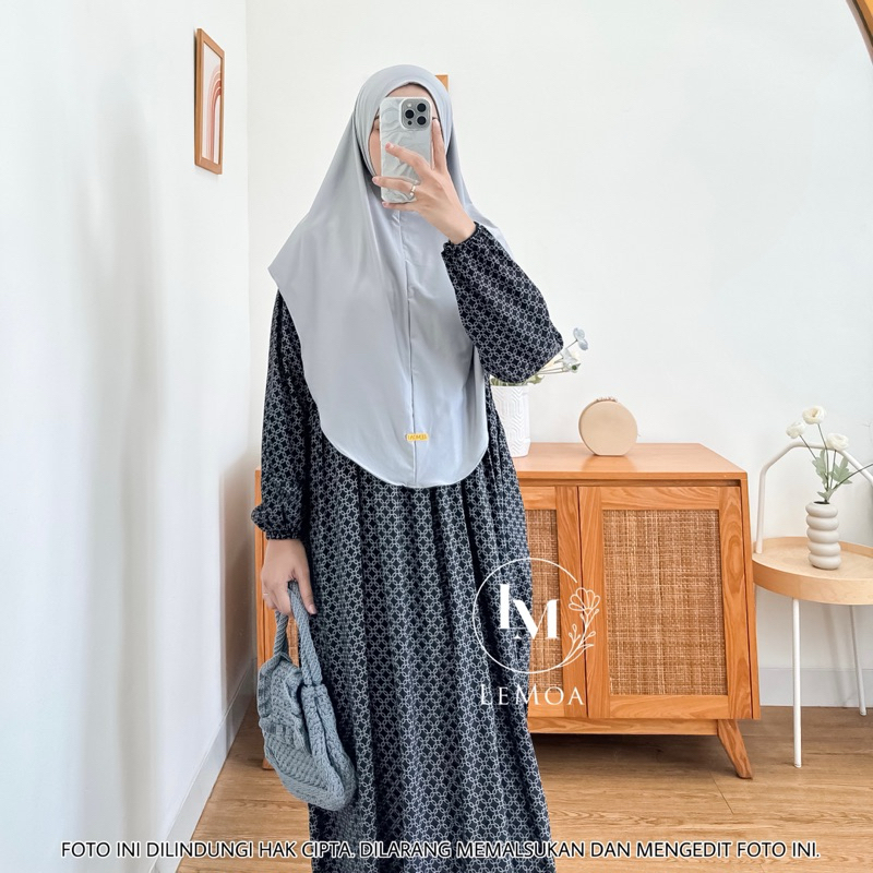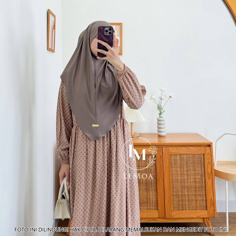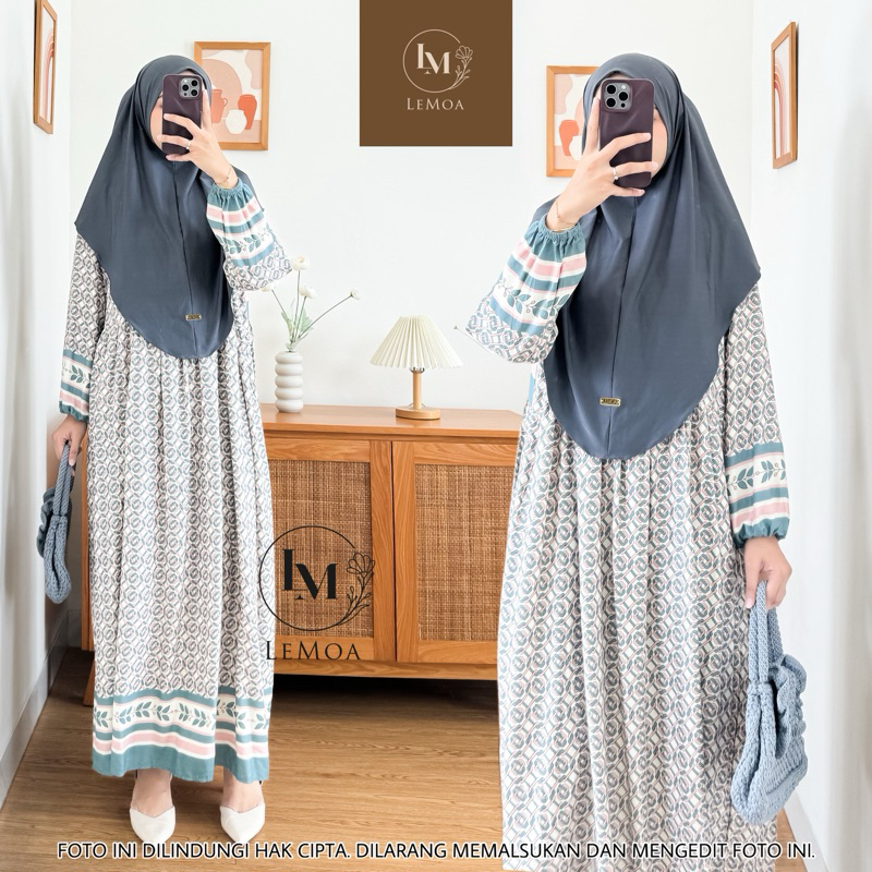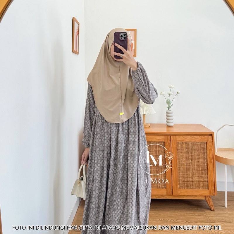 Arsy 2 Midi Dress and Hijab Set By Lemoa Rayon Gamis Motif Eid Clothes Muslim Women's Clothing