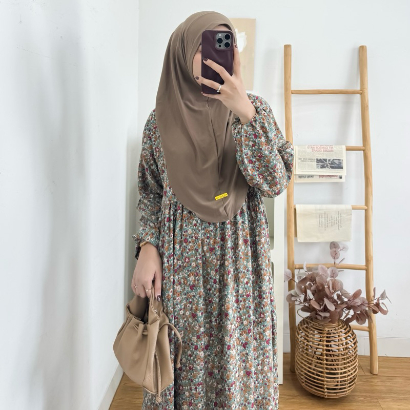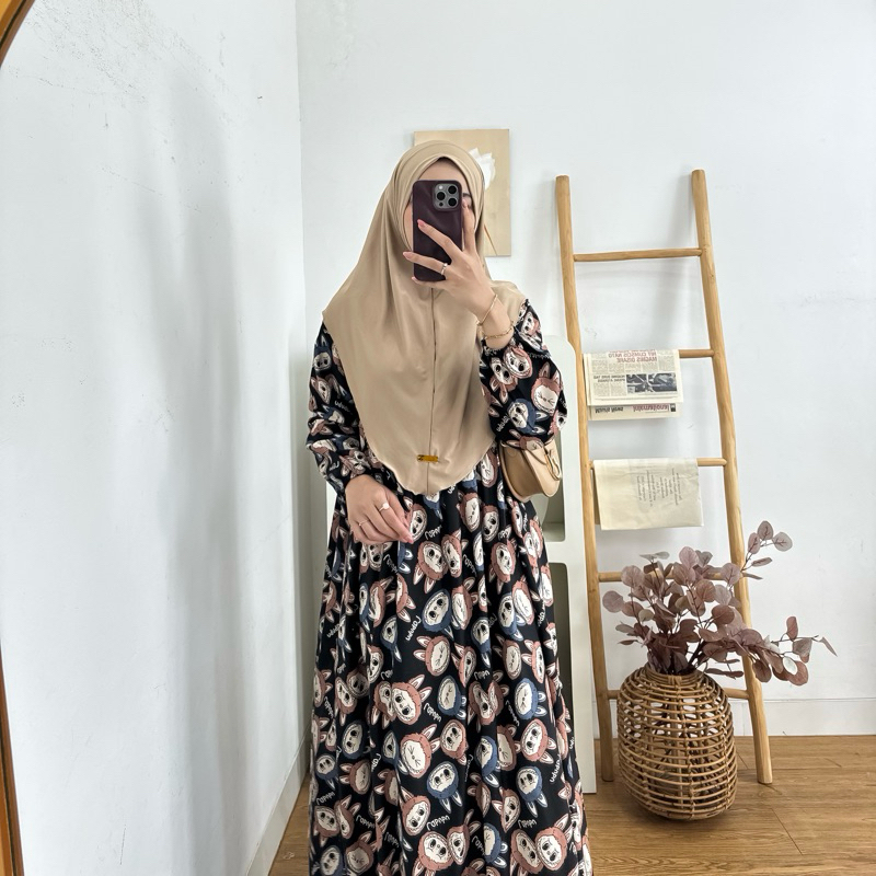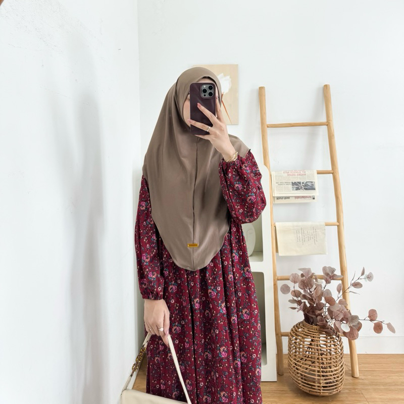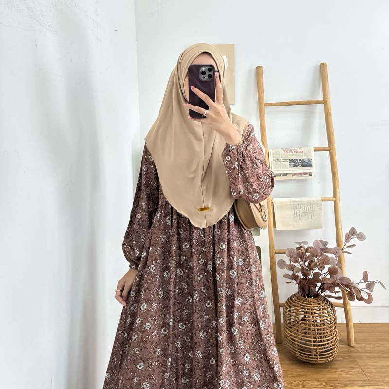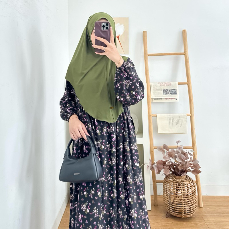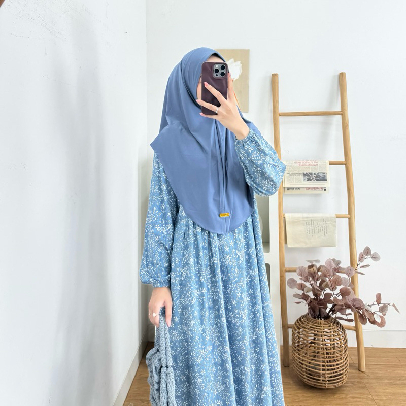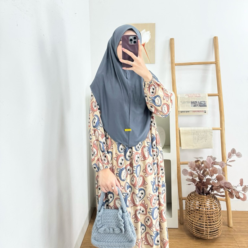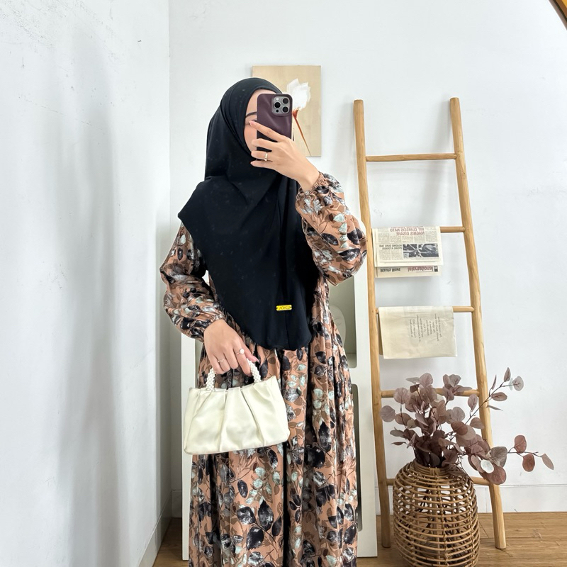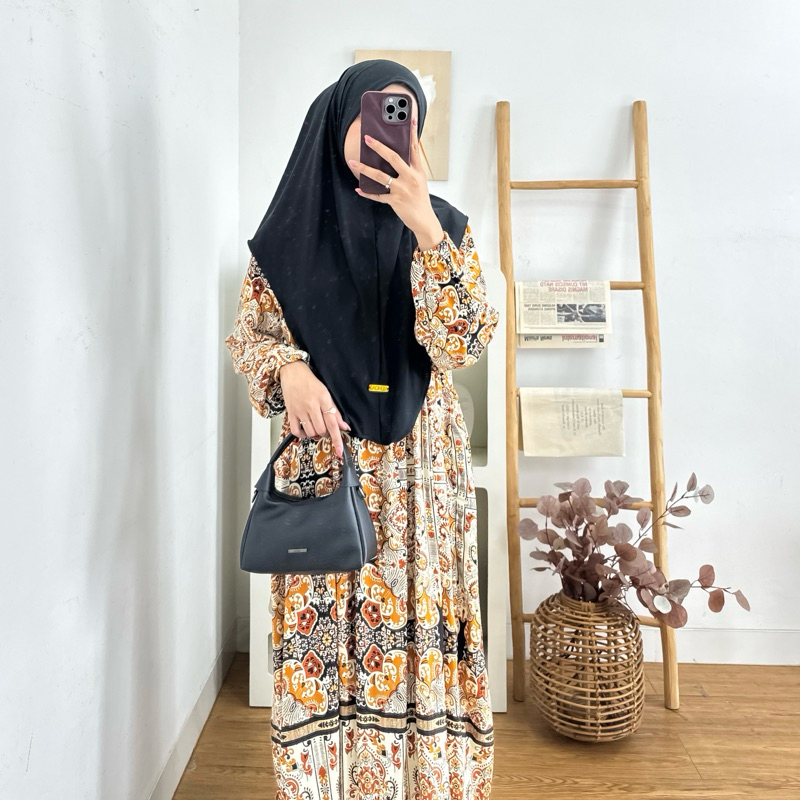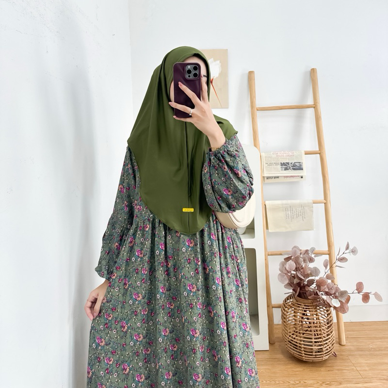 Arsy 2 Midi Dress and Hijab Set By Lemoa Rayon Gamis Motif Eid Clothes Muslim Women's Clothing
