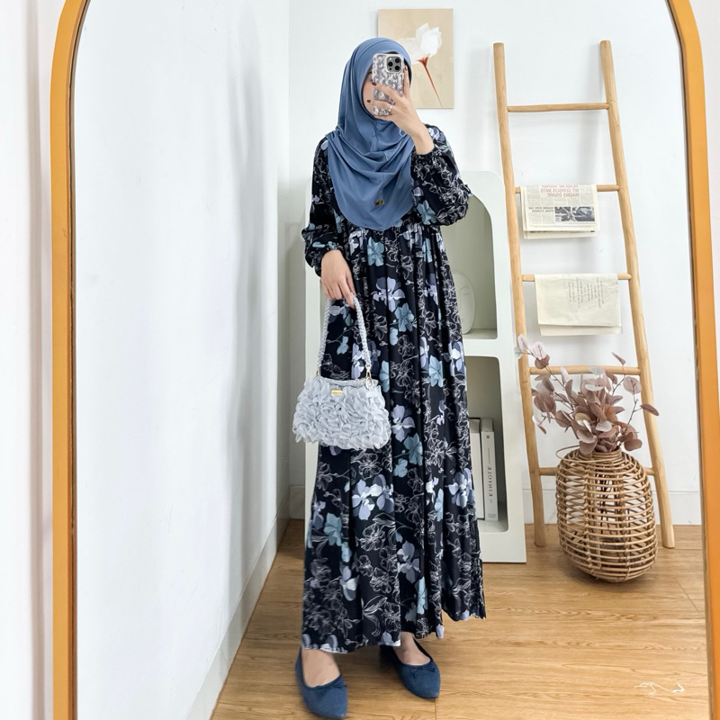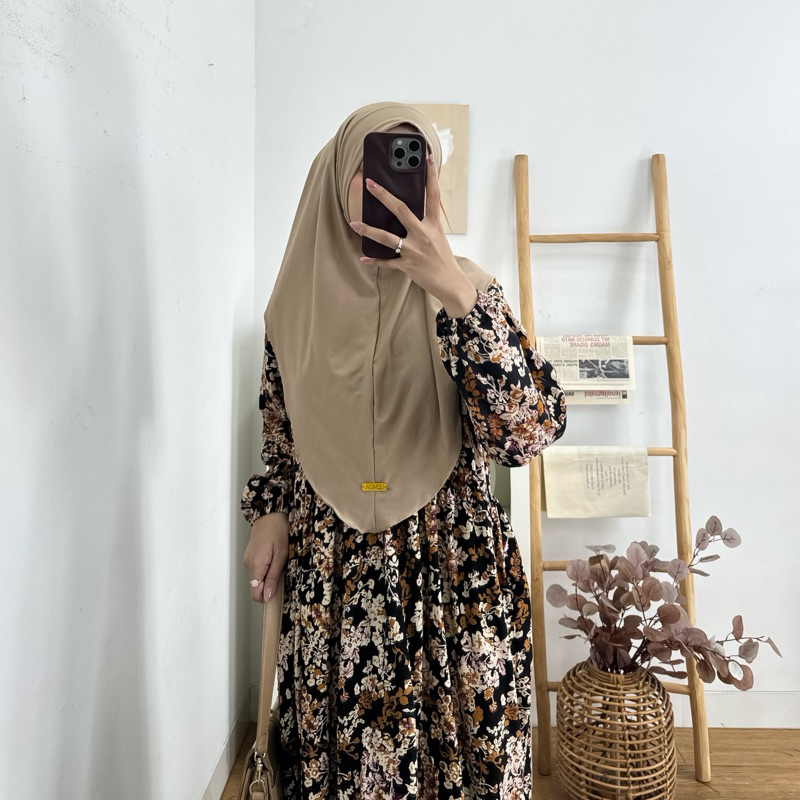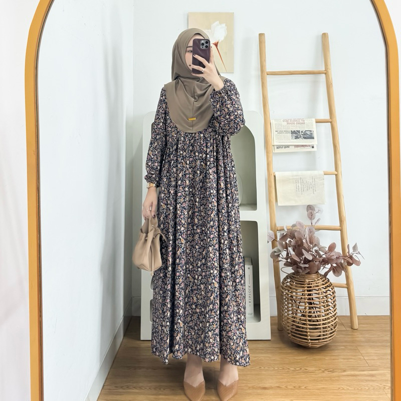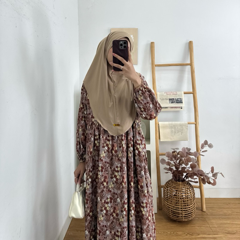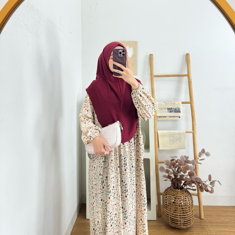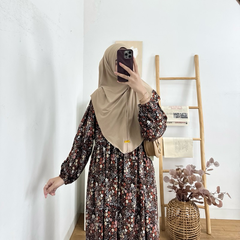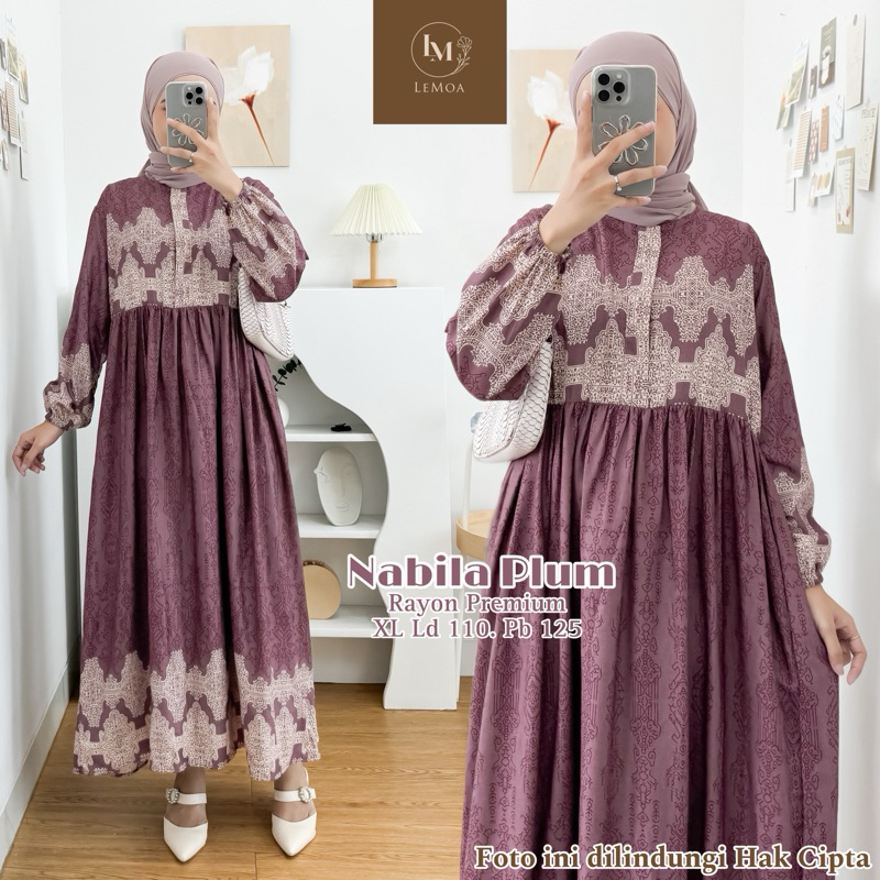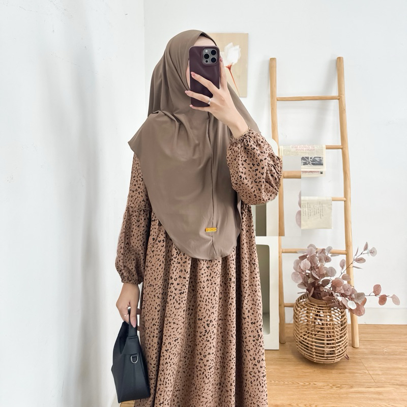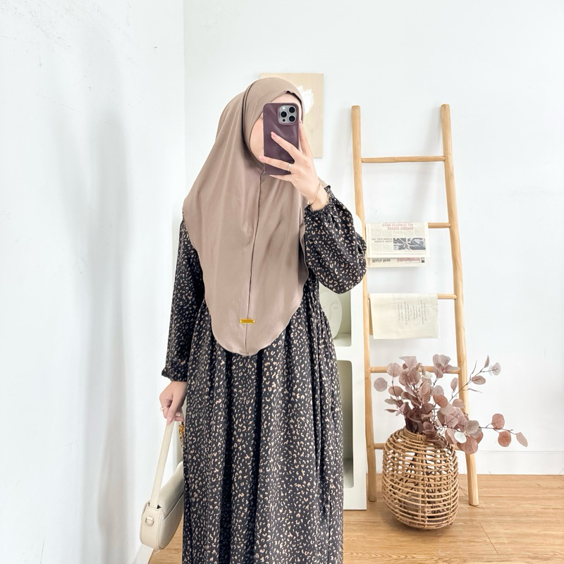 Arsy 2 Midi Dress and Hijab Set By Lemoa Rayon Gamis Motif Eid Clothes Muslim Women's Clothing