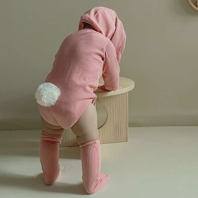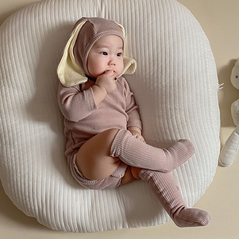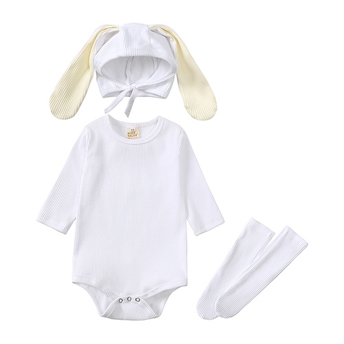 2026 Newborn Baby Rabbit Romper Clothes 3 Pcs Solid Ear Hat Bodysuit Socks Casual Bunny Costume 0-24M Boy Girl Bunny Outfits