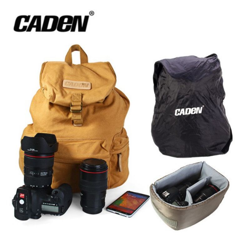 Caden F5 Canvas Camera Backpack bag with Removable Inner Rucksack Rain Cover