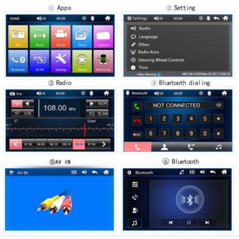 Car player monitor 7'' HD Double 2 DIN Touch MP5 Player Bluetooth Stereo FM Radio USB/TF 7010B
