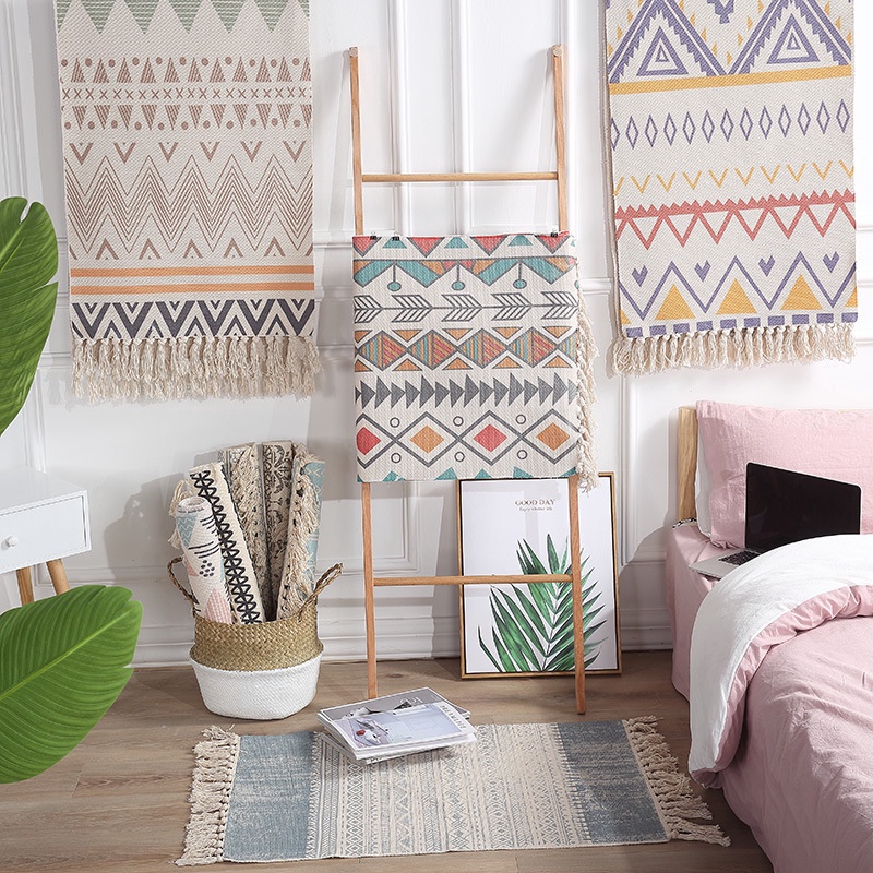 Small Moroccan Cotton Woven Tassel Rugs Tribal Farmhouse Runner Carpet,Washable Throw Floor Mat Runner for Kitchen,Bathroom,Bedroom,Laundry