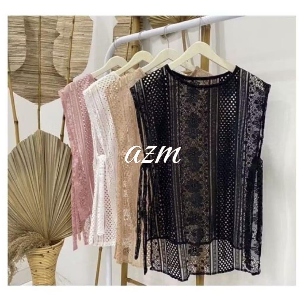 Azmi- Premium Strap Brocade Vest/Lace Brocade Vest Brocade Vest Women's Casual Brocade Vest Side Strap Top Motif Lace Vest