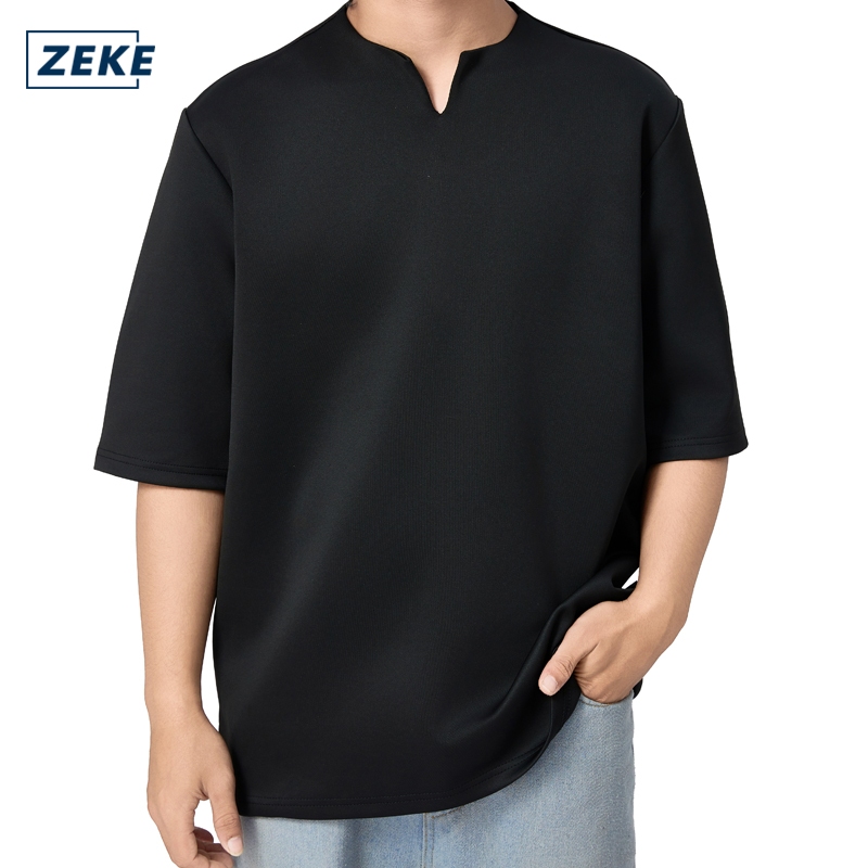 ZEKE D0049 V-neck Short Sleeved Shirt Loose Menswaer Lengan Pendek Pakaian Lelaki