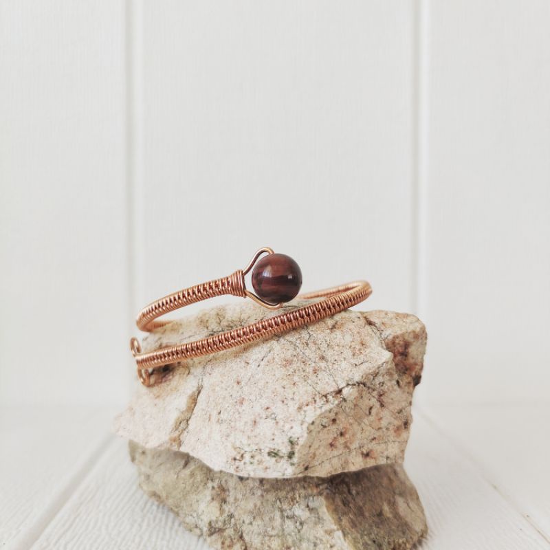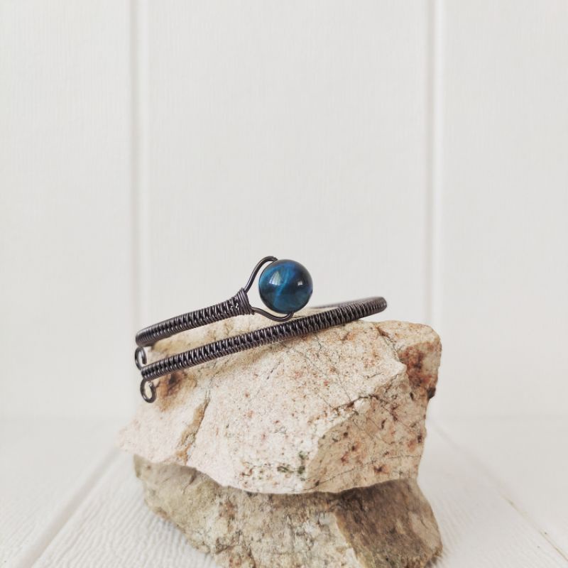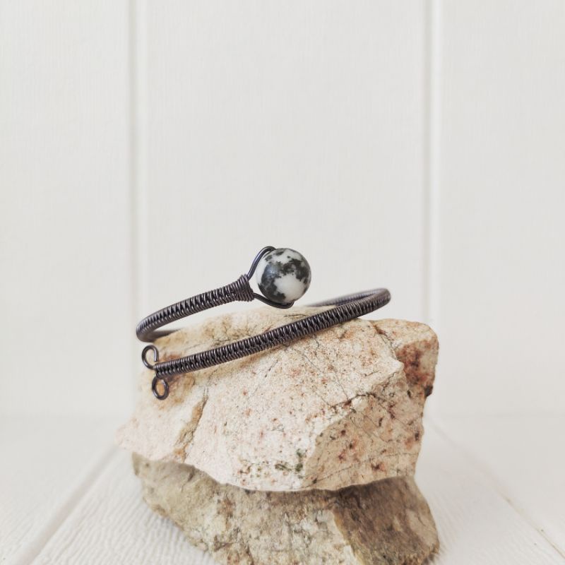[Anne Bangle] Wire Wrapped Bangle with Crystal Bead