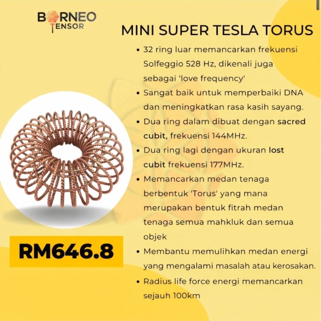 MINI SUPER TESLA TORUS/POWERFUL ENERGY COVER 100km/Tensor Ring/5G PROTECTION Radiation/Sains/Tembaga 100%