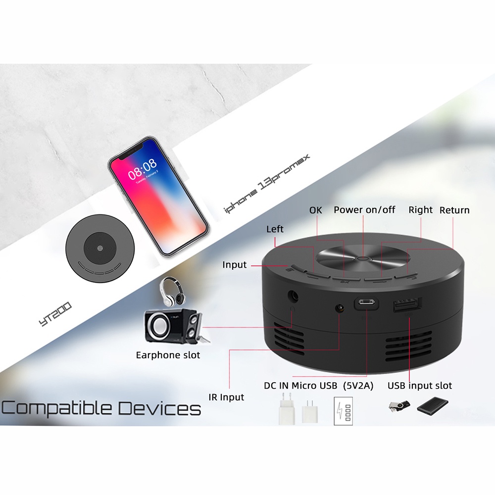 Mini Projector LED Portable Video Proyector 320*180P Compatible with Wire Screen Mirroring Home Media Player for Children