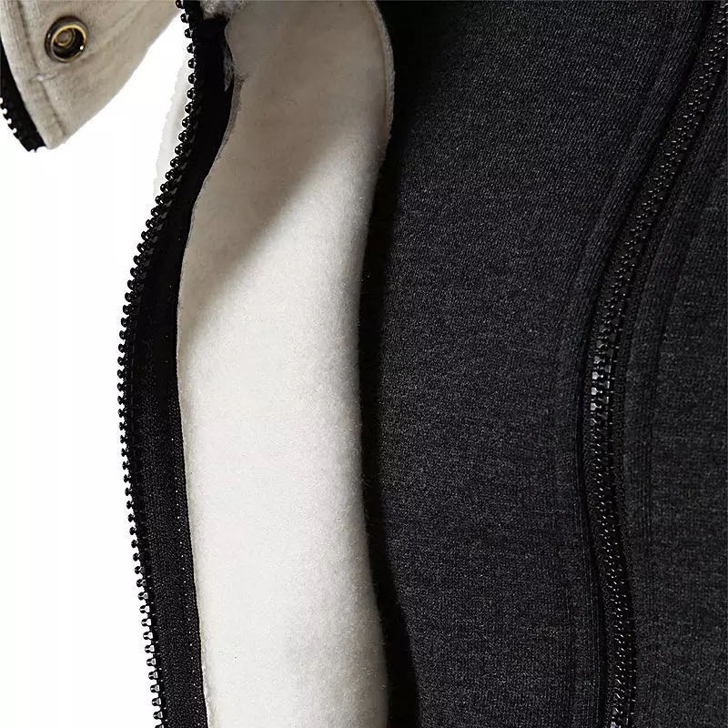 Men Autumn Winter Casual Fleece Coats Male Scarf Collar Fashion Hooded Outwear Slim Fit Zipper Jackets