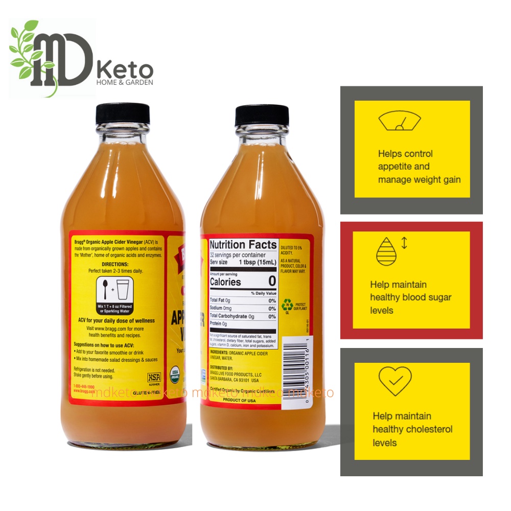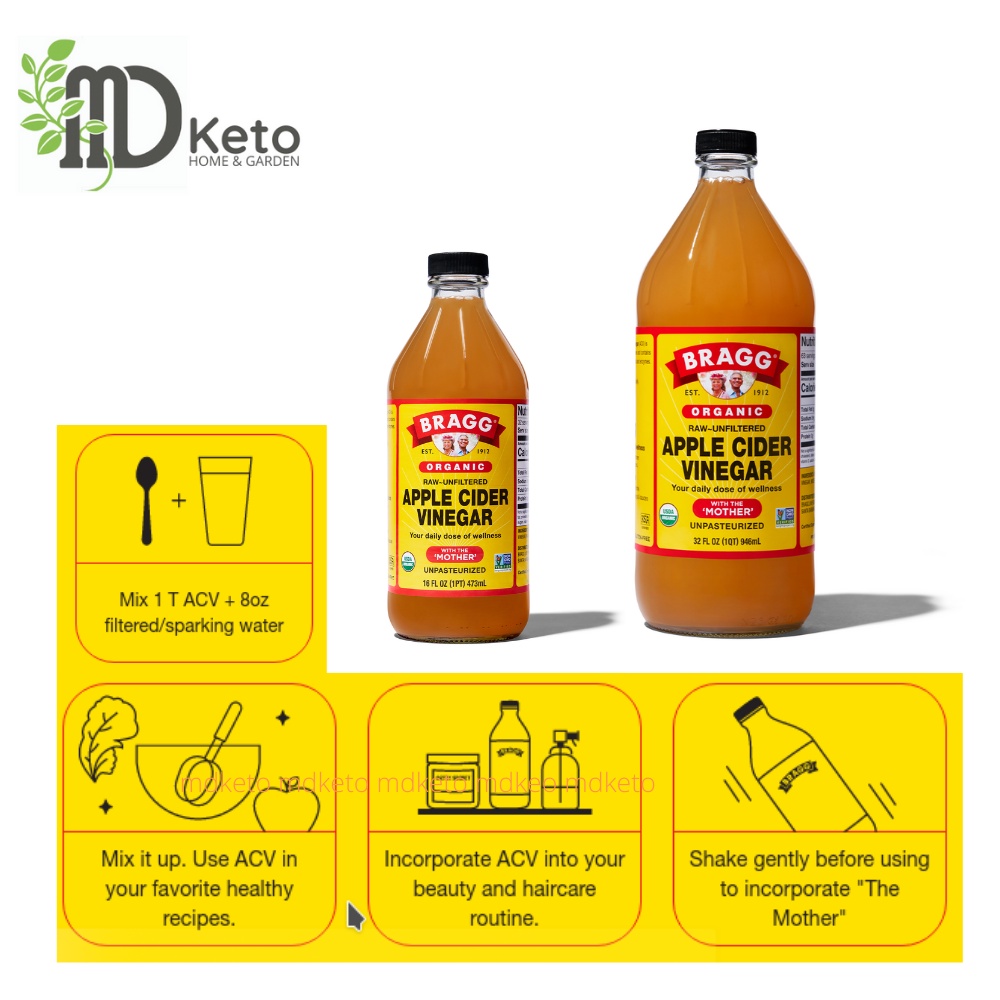 [MD Keto] Healthy Bragg Apple Cider Vinegar 946ml for healthy digestion low carb vegan vegetarian gluten free