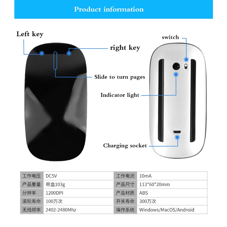 Suitable for Apple MacBook MAC computer wireless mouse mobile phone iPad Magic Mouse rechargeable Bluetooth touch mouse
