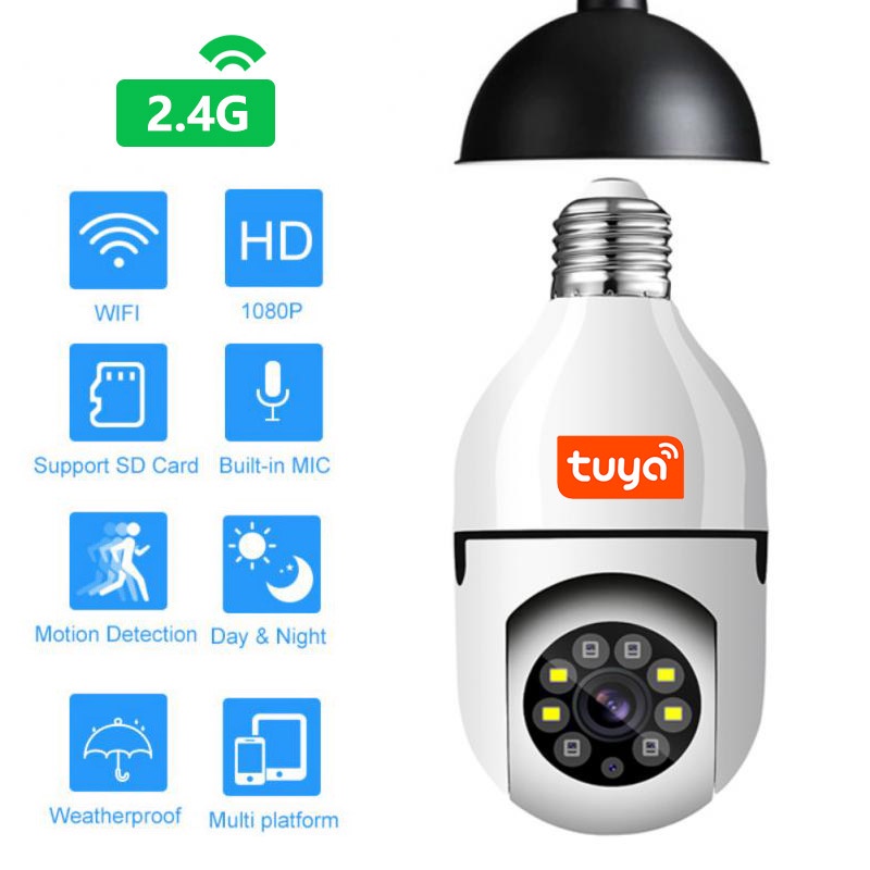 Tuya 2MP E27 Wifi Surveillance Camera Bulb Night Vision Full Color Human Track CCTV Video Smart Home Security Monitor IP PTZ Camera
