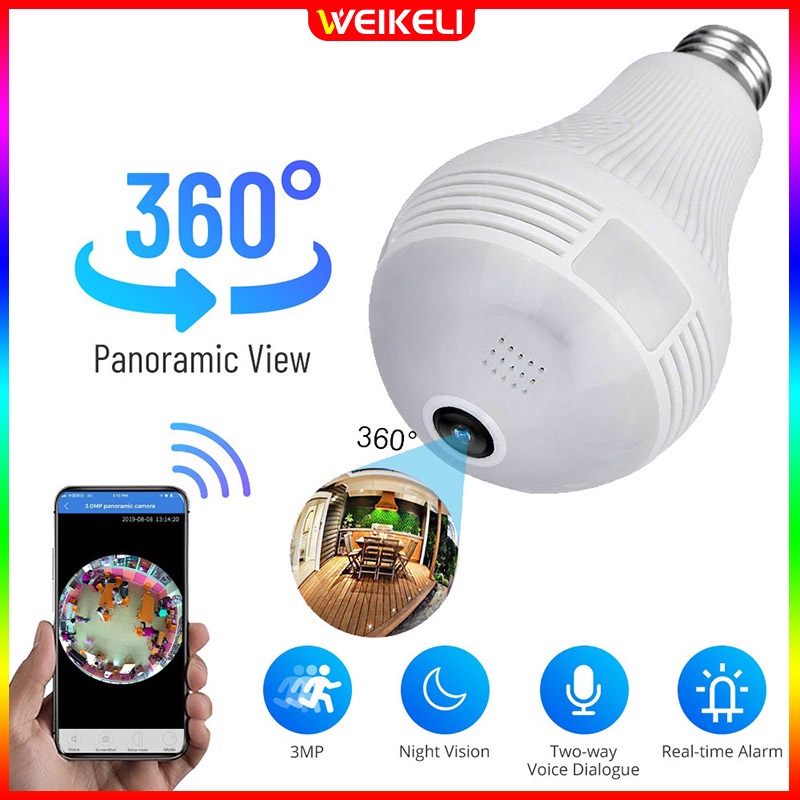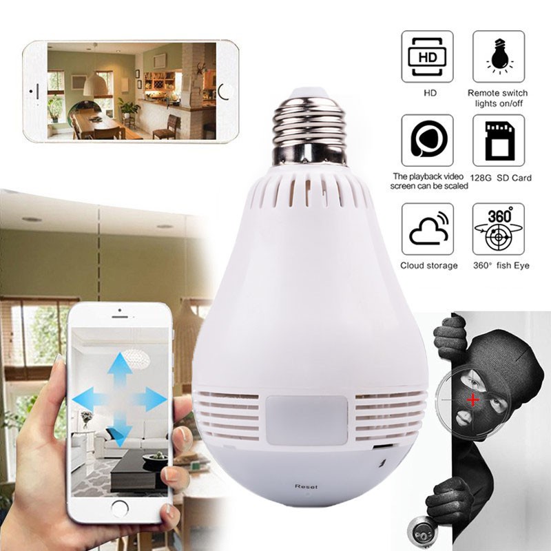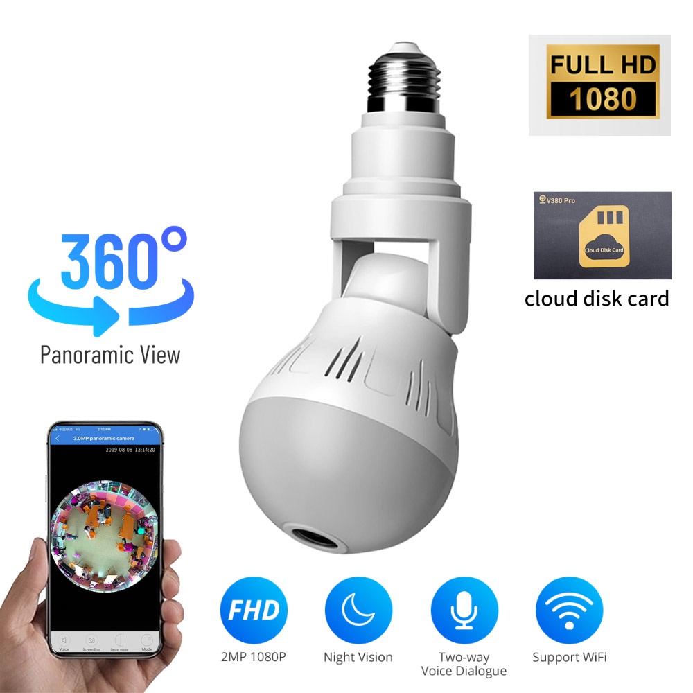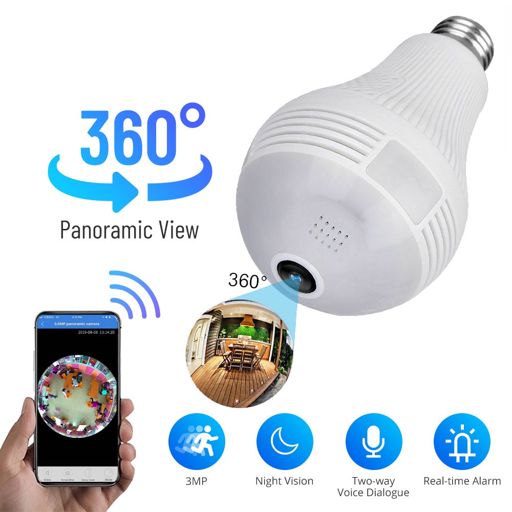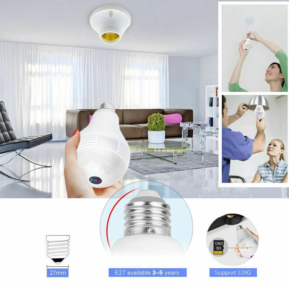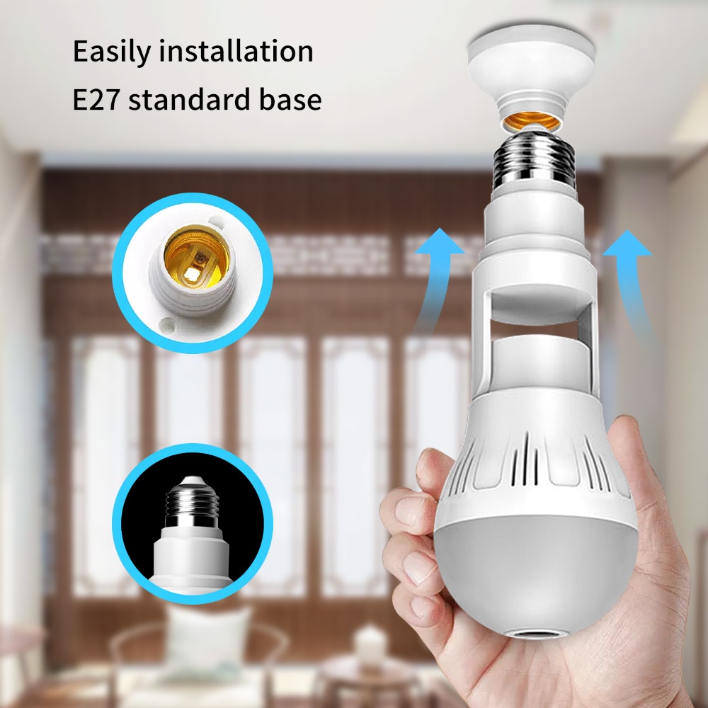 360° LED Wireless Camera Fisheye Lens Panoramic Home Security WiFi CCTV with E27 Bulb Lamp IP Two Ways Audio Cam