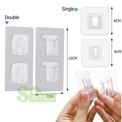12 pcs (A+B) Double-Sided Adhesive Wall Hooks, No Damage Wall Hangers Without Nails, Self Adhesive Small Hooks for Hanging, Transparent Sticky Utility Hooks, Plastic Shower Hooks