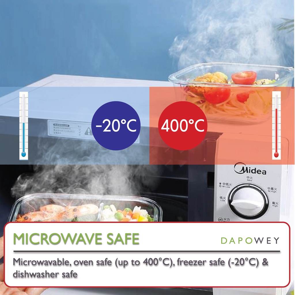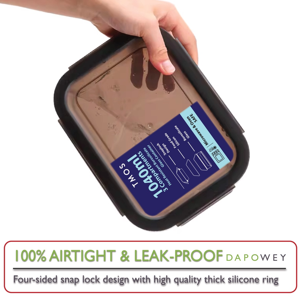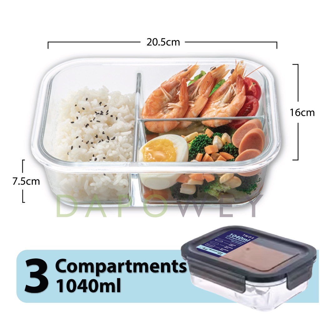 DW Bekas Kaca Makanan Borosilikat Anti Bocor Tahan Panas Microwave Glass Lunch Box 玻璃饭盒