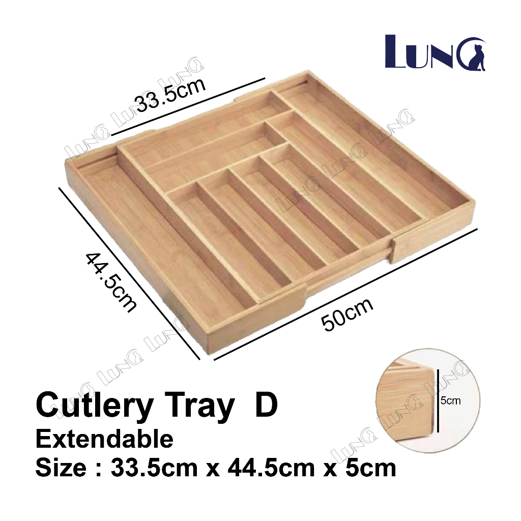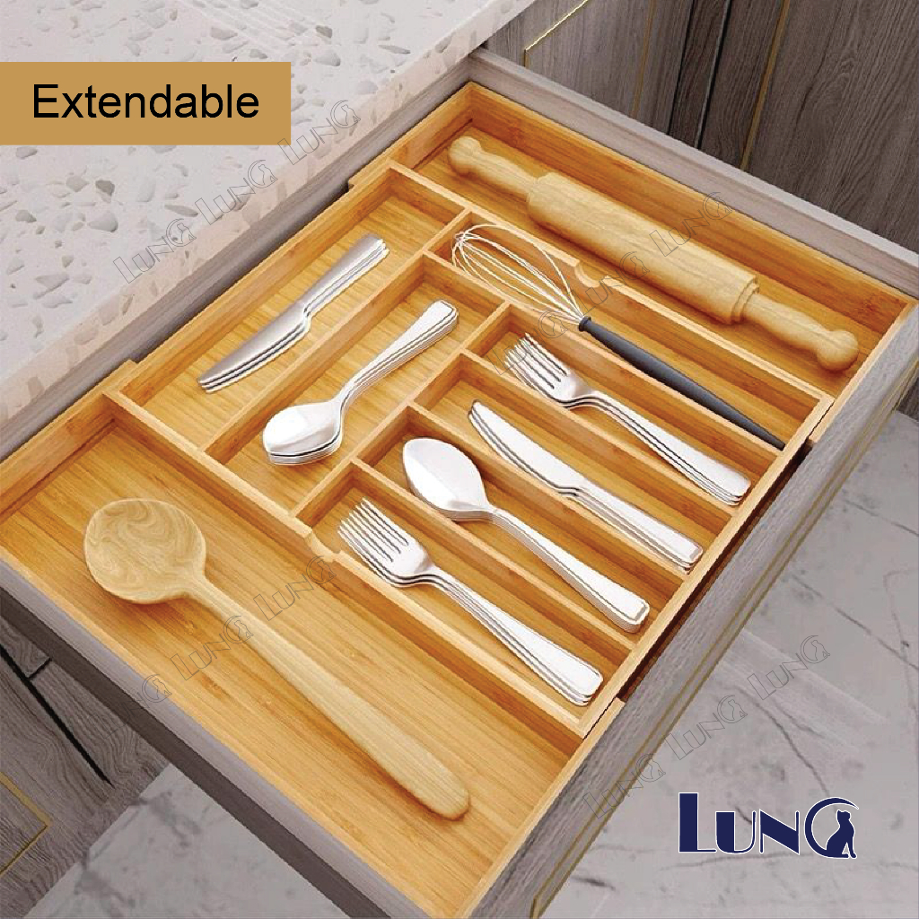 Cutlery Utensil Tray Knives Spoons Forks Organizer Bamboo Extendable Cutlery Tray Drawer