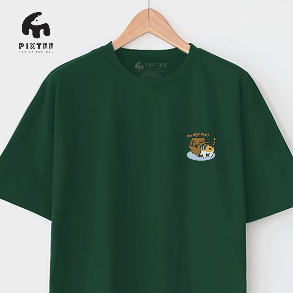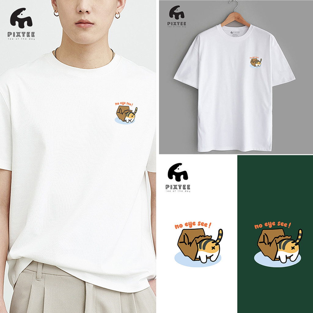 PIXTEE No Eye See Cat Premium Cotton 180gsm Tshirt Unisex Cutting Baju