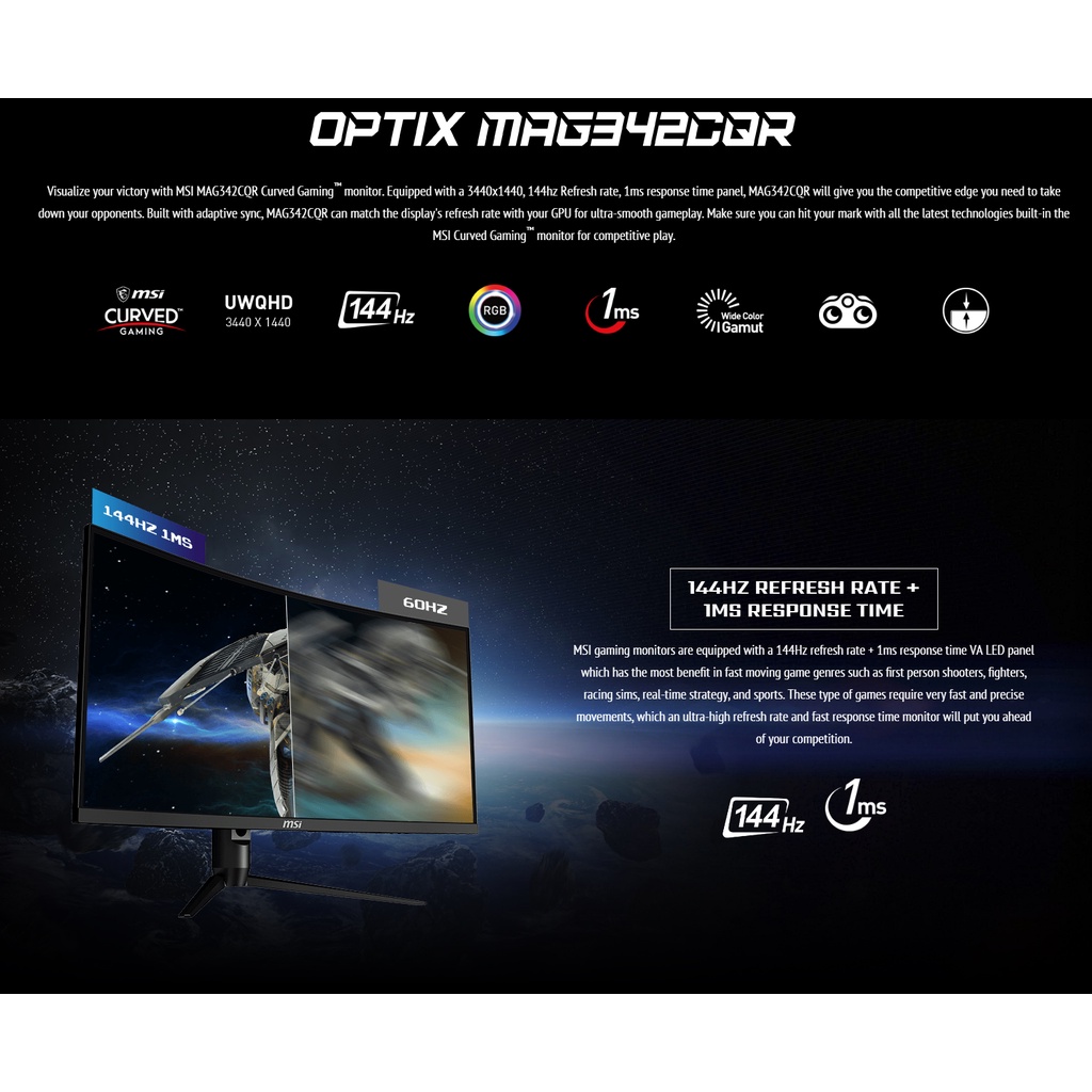 (AONE PLUS SS2) MSI Optix MAG342CQR Gaming Monitor