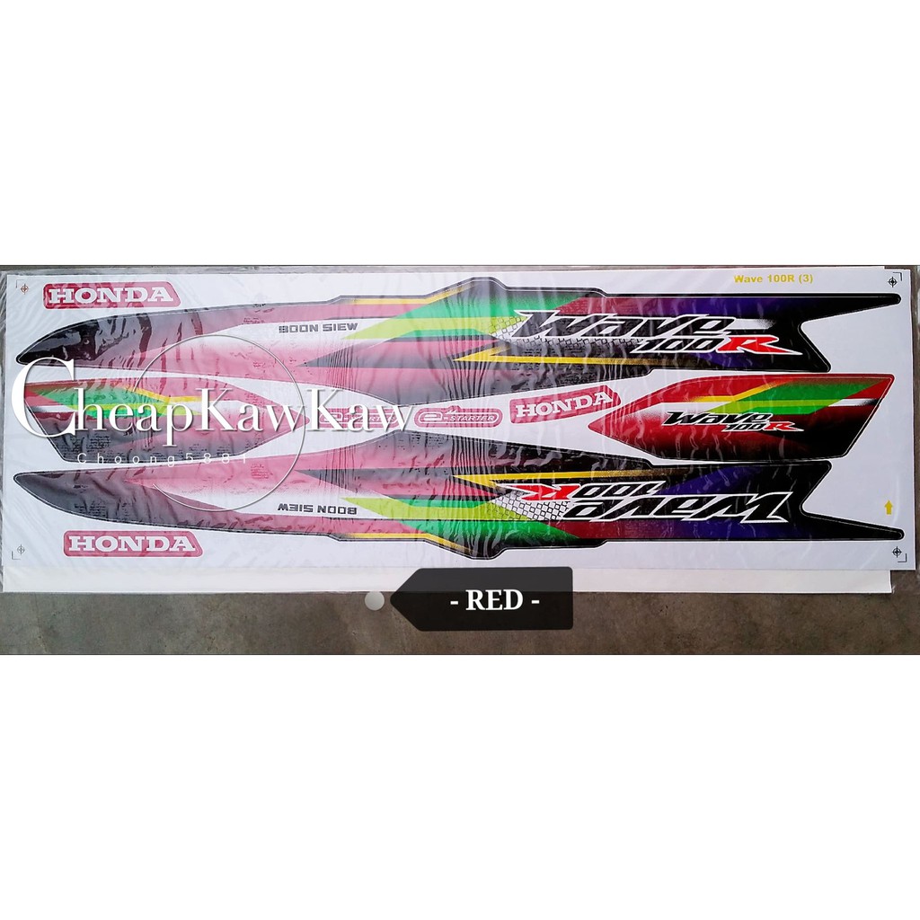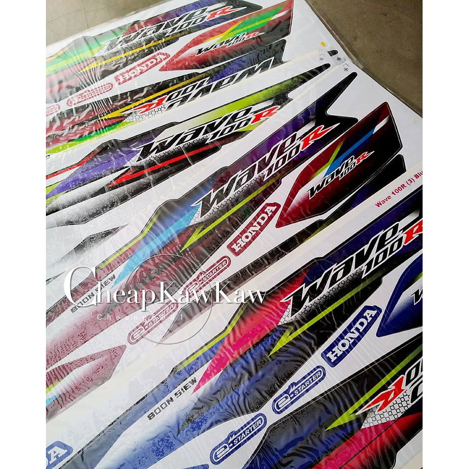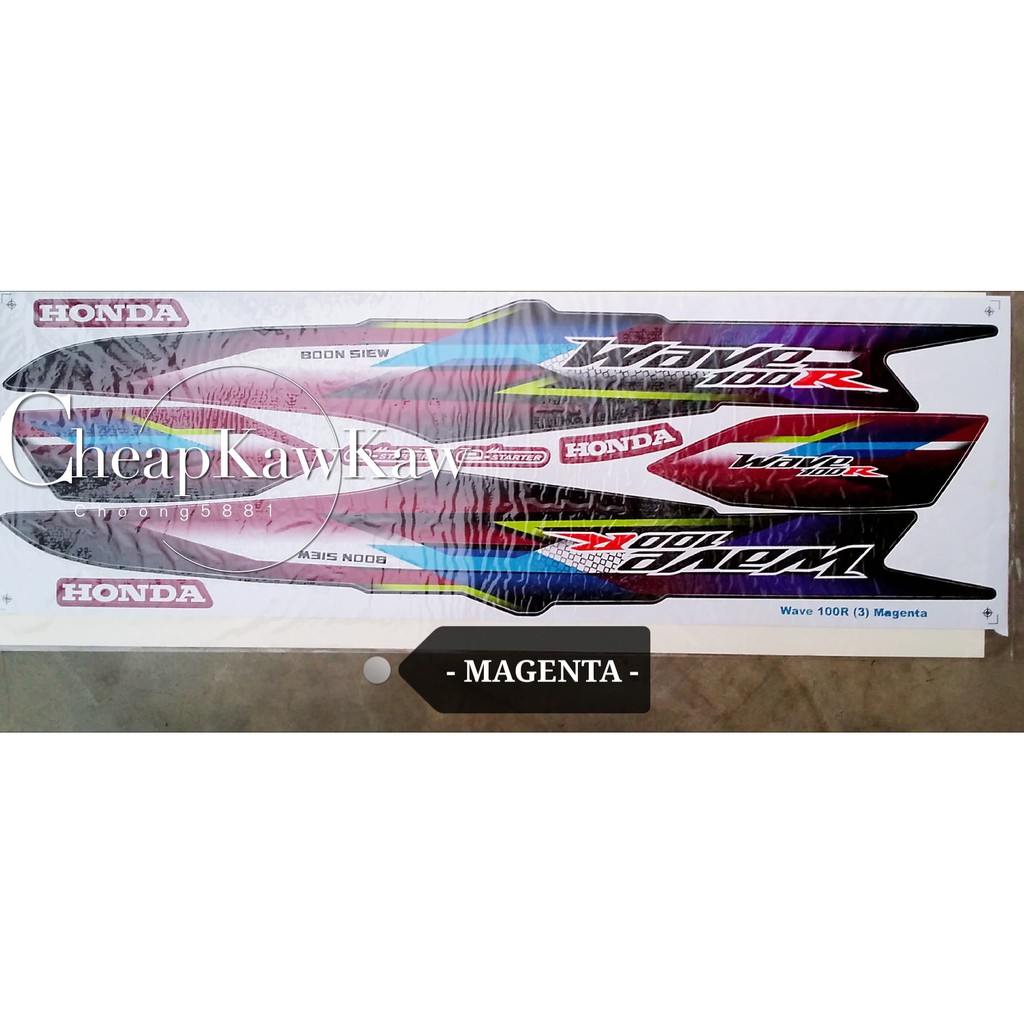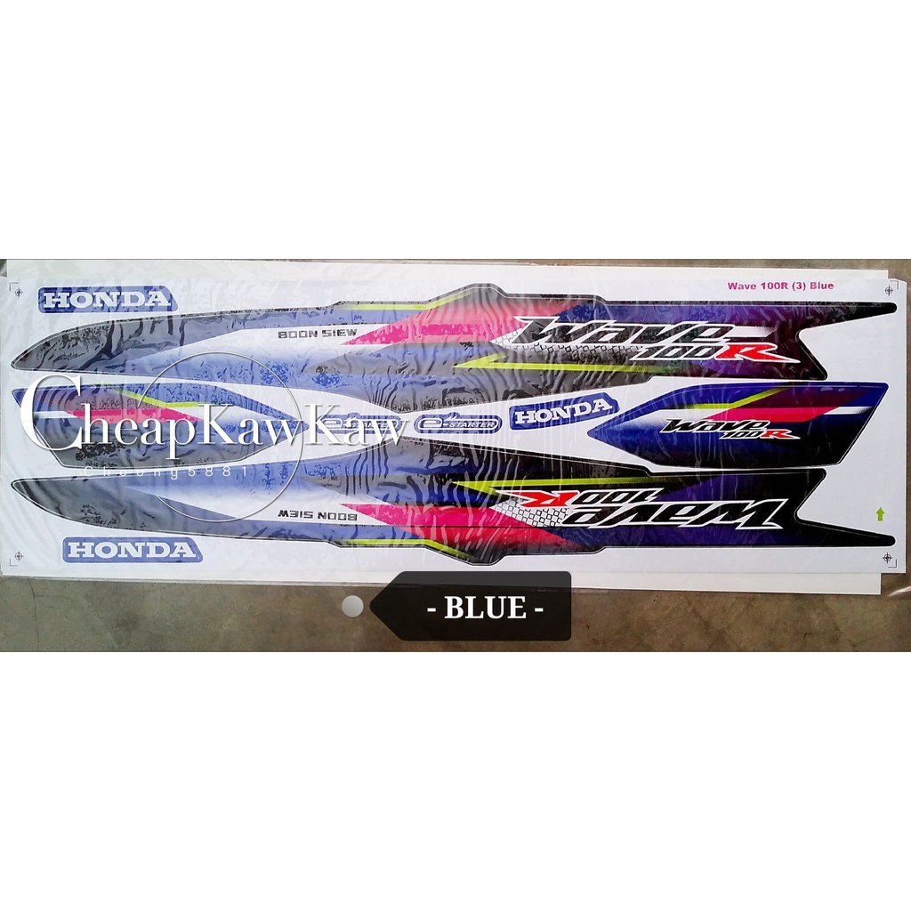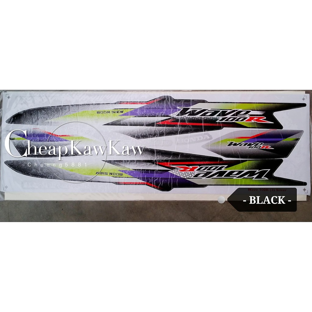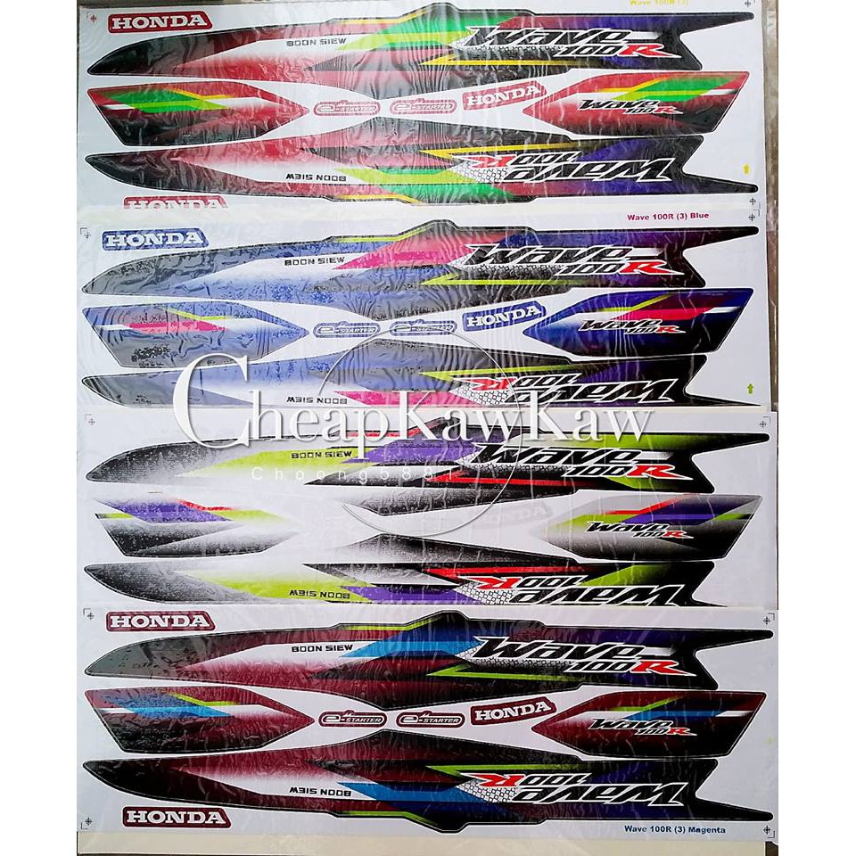 WAVE 100 R ( 3 ) Body Cover Set Stripe Sticker - Black / Blue / Red / Magenta - Ready Stock